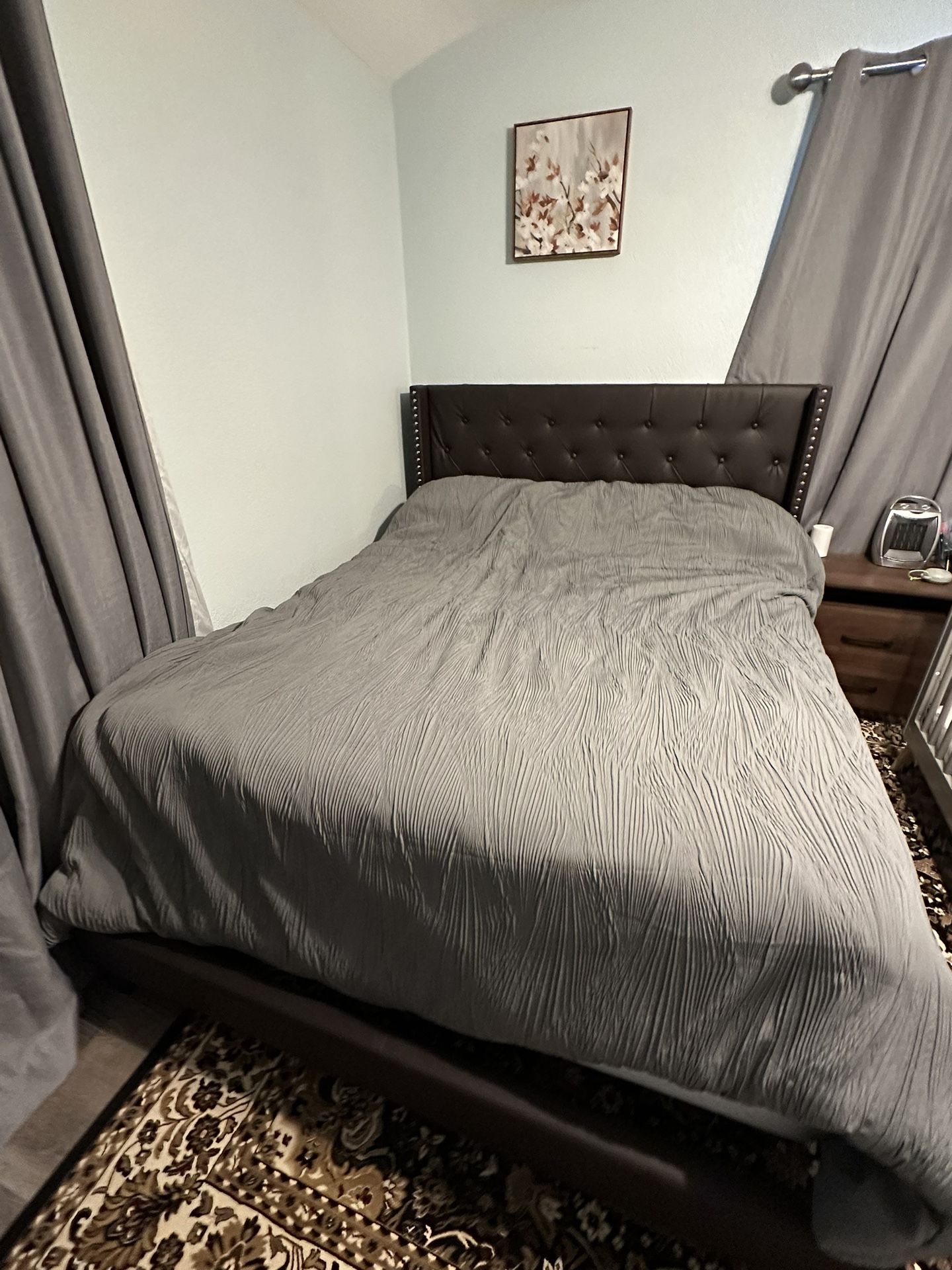 It’s like brand new. Only used for 2 months. Mattress not included. Bed frame and box spring included.