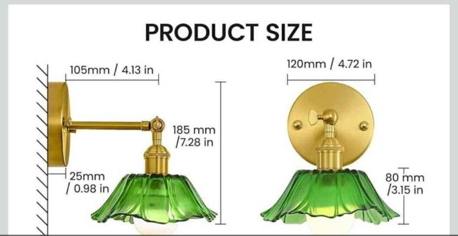 Pair of 2 glass wall sconce green lights. Beautiful set. Box never opened. Could be used for Living Room or bathroom. Come check it out. Very nice set. .... ....