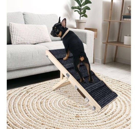 Small Dog Ramp, Adjustable Portable Folding Wooden Pet Ramp, 32" Long with Non-Slip Traction Mat, Adjustable from 9" to 17.5", Dog Climbing Ladder for Sofa,Couch,Car (Grey) NO.LGPT1 Retails $ 55