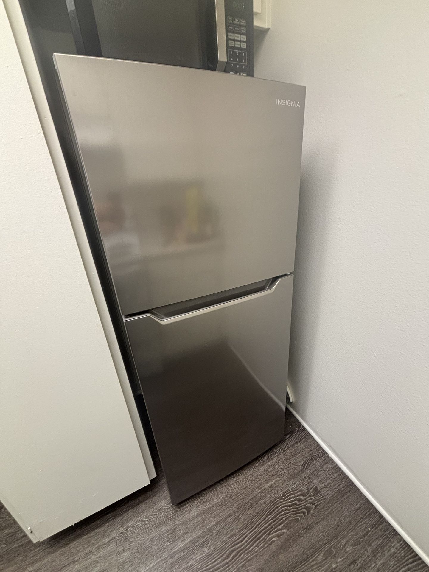 Refrigerator- Insignia, 10 Cu. Ft Top Mount Refrigerator, Steel, 59 1/2 x 23 5/8 x 26 1/8