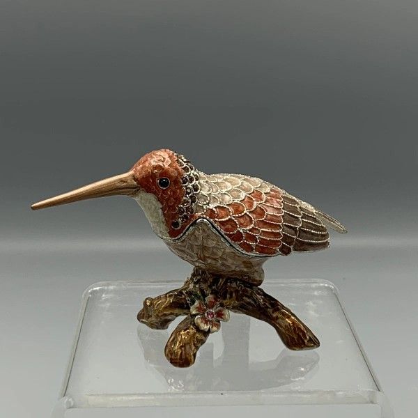 Vtg Jeweled Enameled Hinged Trinket Box Bird on Tree Branch Hummingbird Crystals