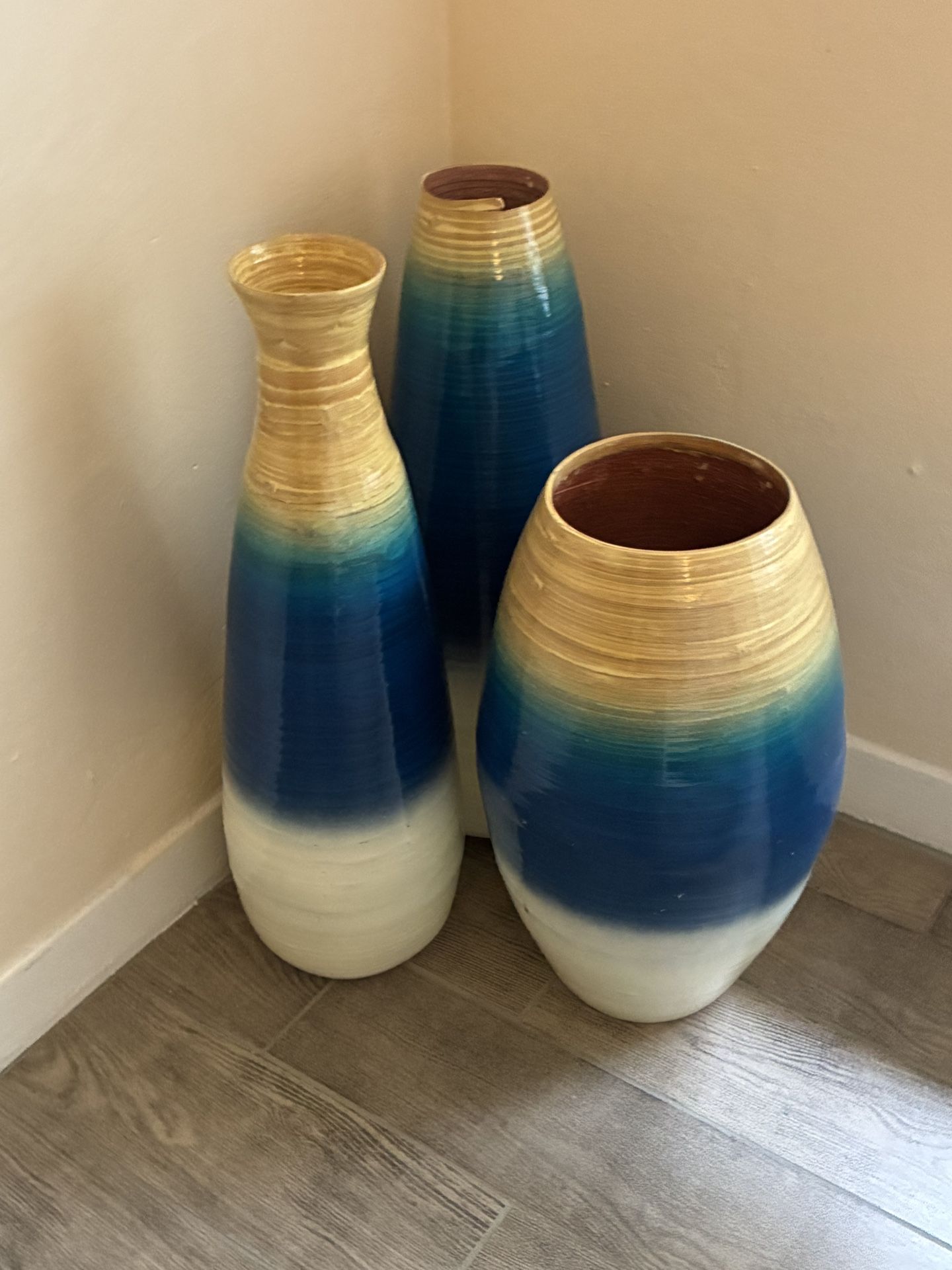 They’re more like plastic than ceramic. $10 each or $20 for all 3 Shortest is 17in tall and back two are 21.5in tall