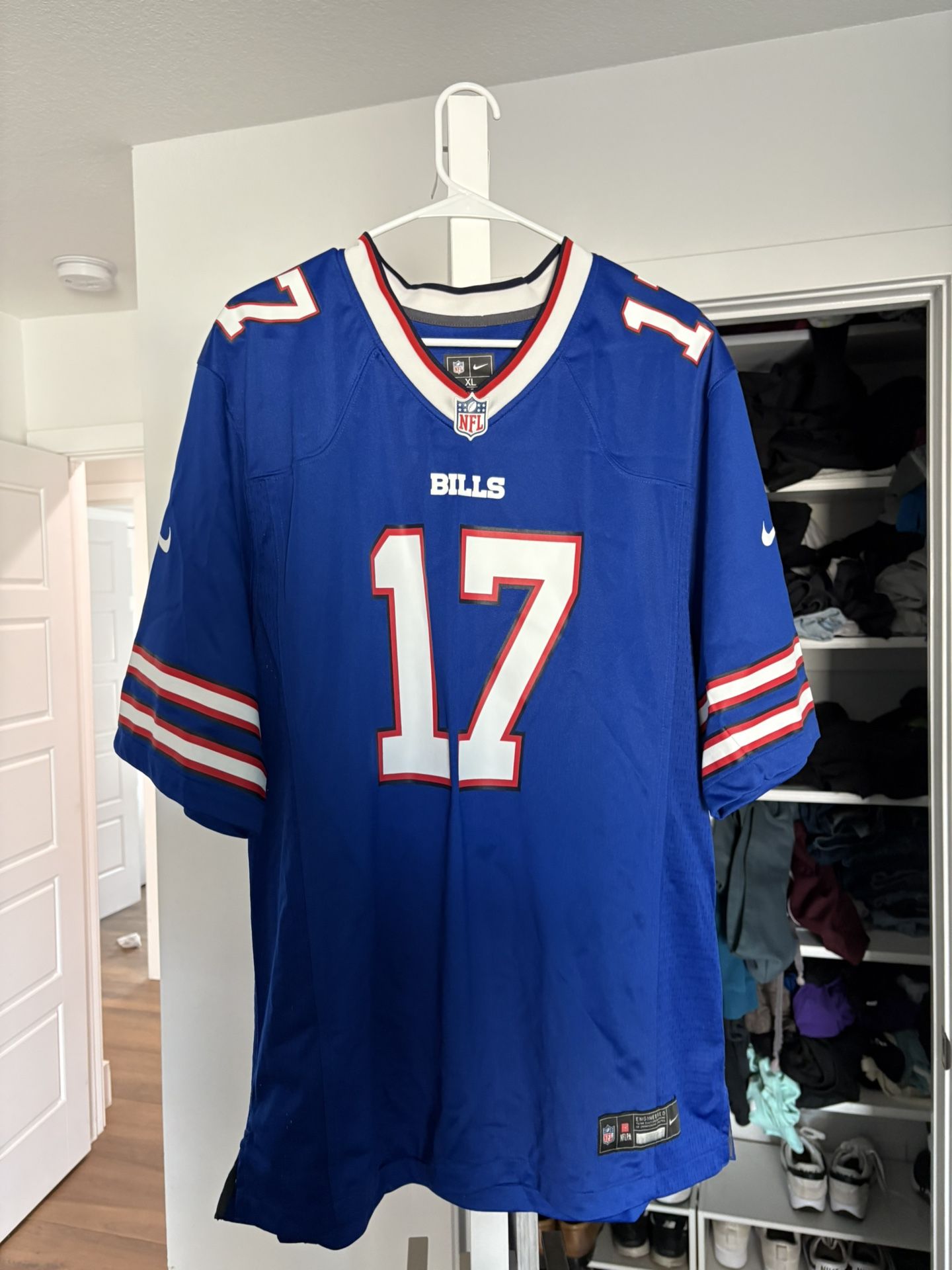 Brand new never worn Nike Josh Allen football jersey, received as a gift and is just too large (XL), $130 dollars new from scheels 80 cash