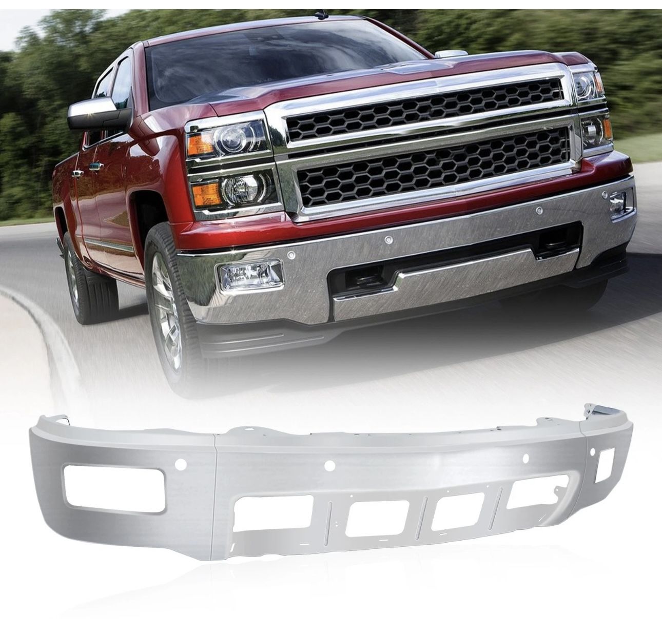 PENSUN Steel Front Bumper Cover Fit For Chevy Silverado 1(contact info removed)-2015, 3 Pcs Chrome Bumper, with Fog Light Holes, OE Replacement:GM1002