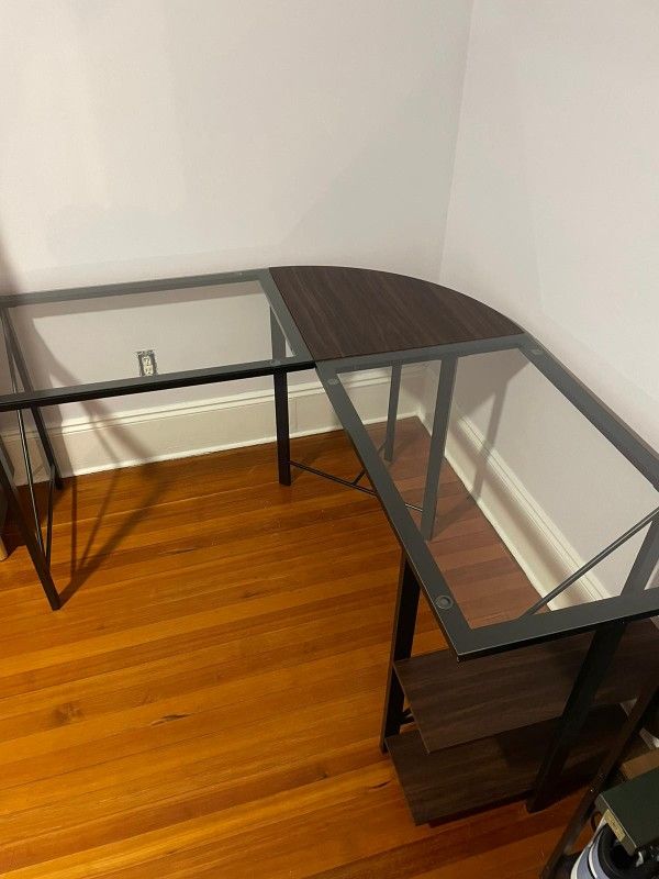 This is an almost new beautiful glass desk, no scratches, that comes with a reclinible gaming chair.