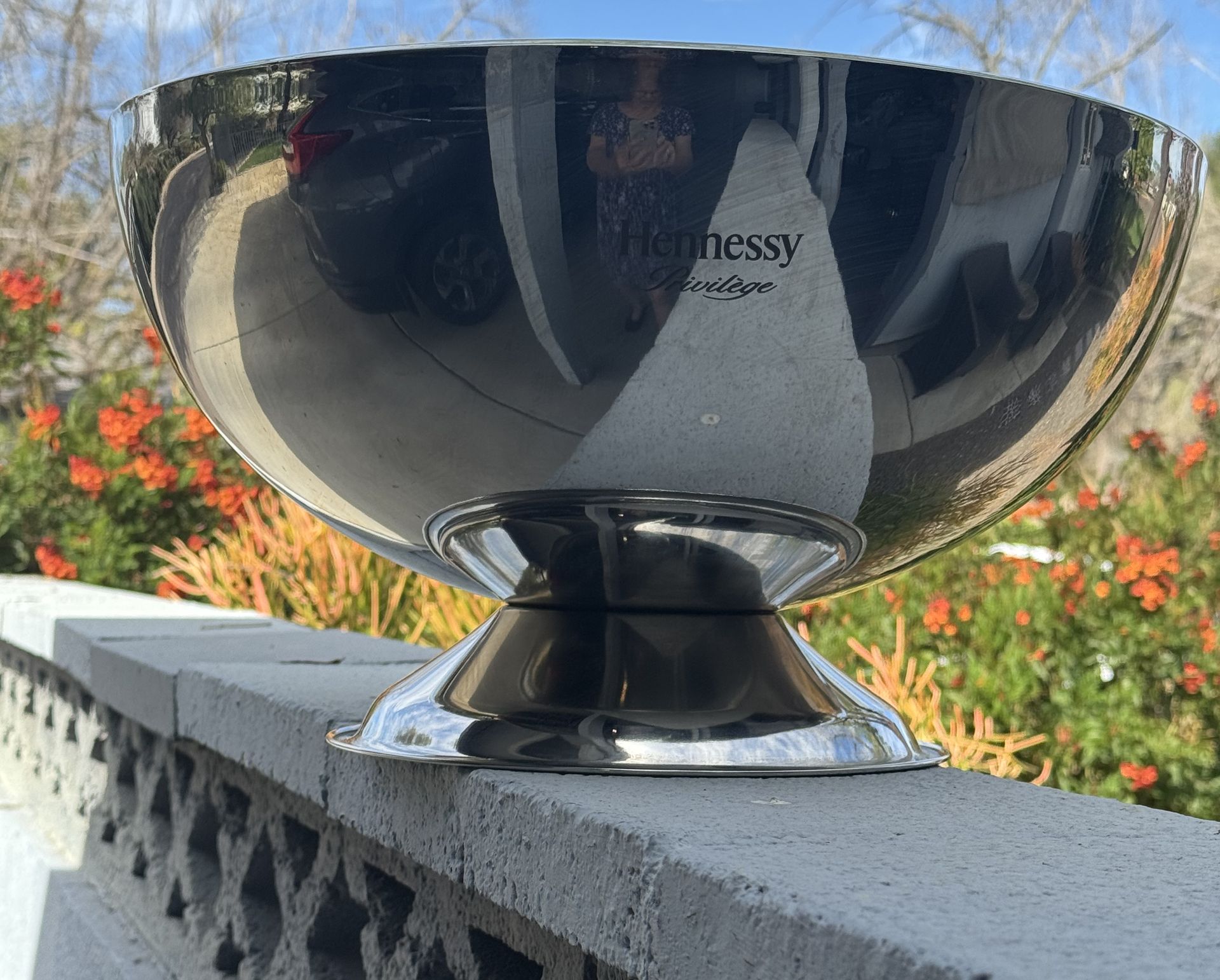 Hennessy Cognac Lrg. Ice Bucket Chiller Double Magnum VS Black Privilege & Scoop. Pick up 7th Ave & Indian School in Uptown Phx or I can ship, This is a double walled bowl and the diameter is 17” and 9.5” tall. Unpackaged weight is just over 5 pounds. Very hard to find and purchase. In excellent condition without dents and scratches.