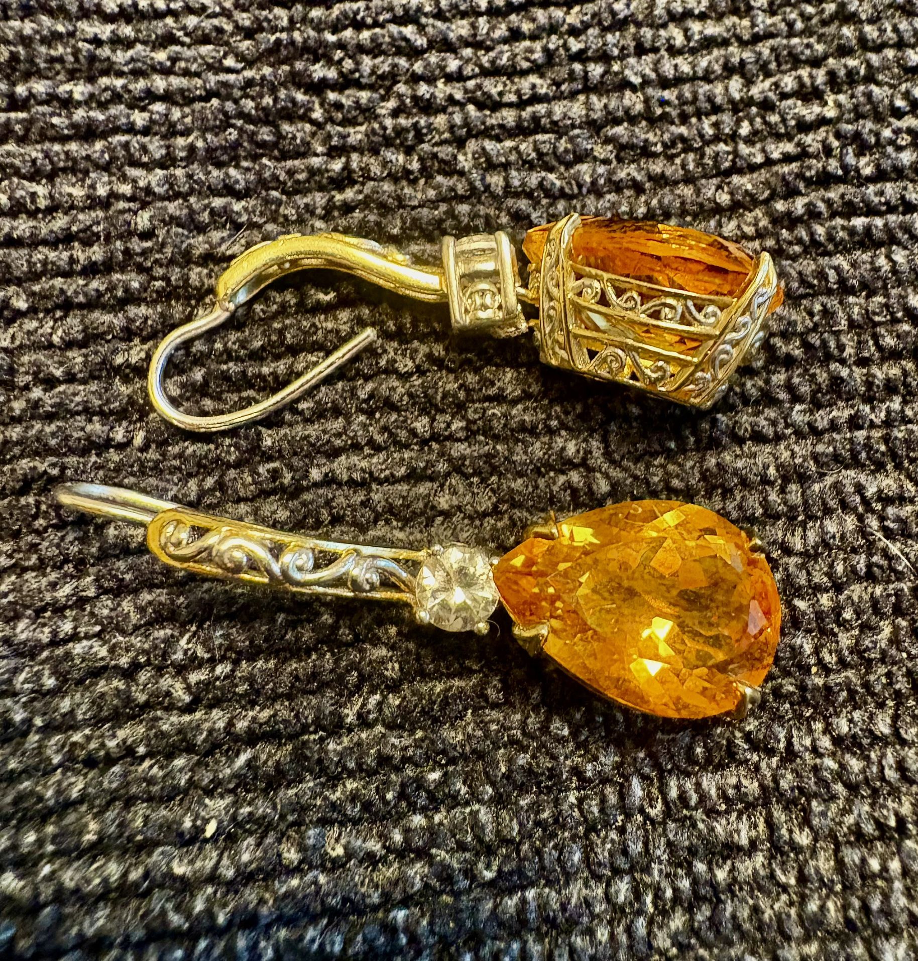 Beautiful Madeira Citrine and white Topaz set in Sterling Silver with 14 k gold accents. The rich deep gold color is unique