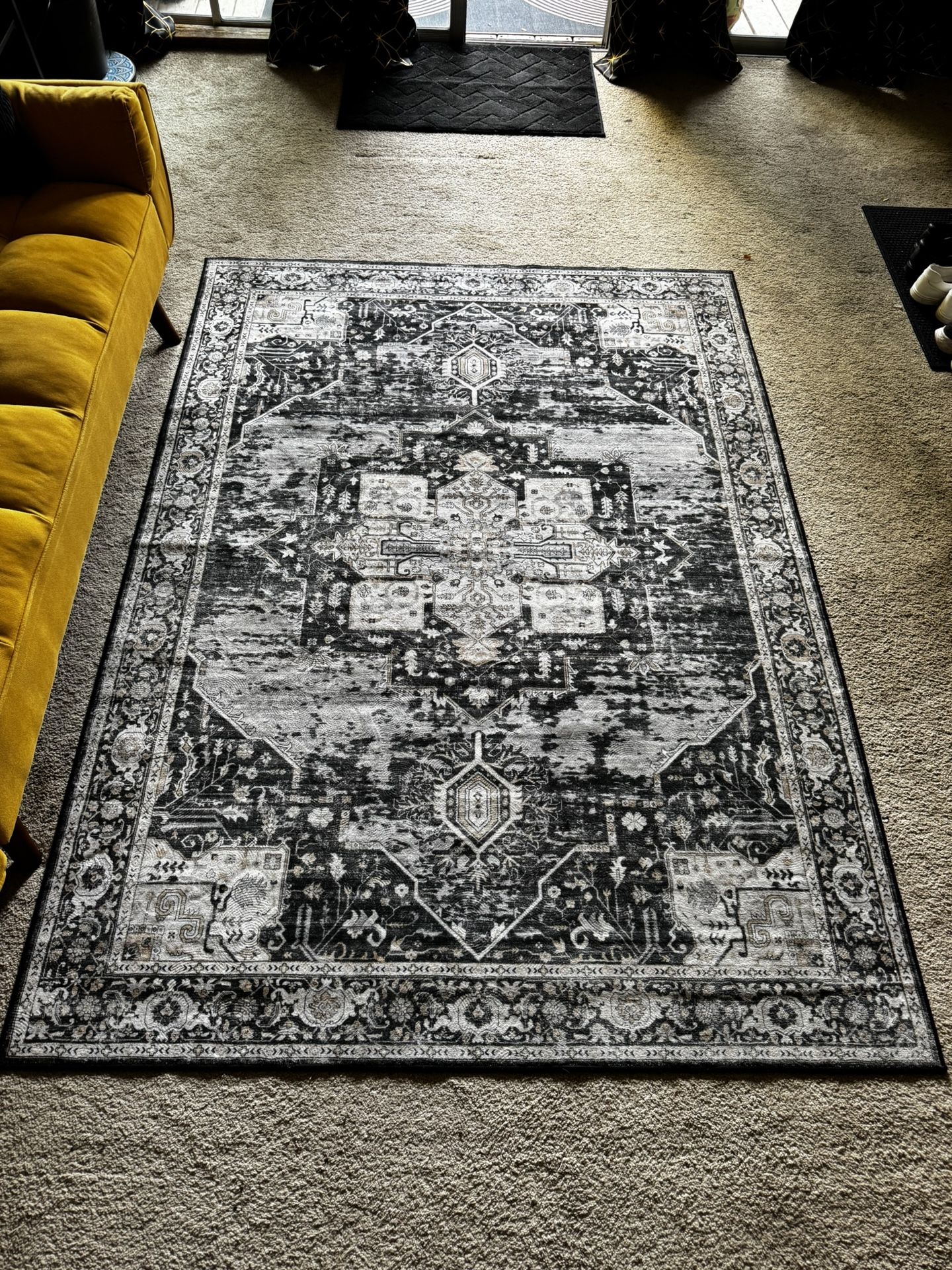 5’ x 7’ black and tan carpet. Asking $20 obo. Non-smoking and no pets.
