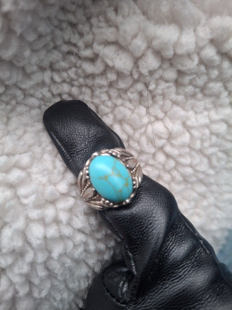 vintage ring with an oval turquoise stone. size 8
