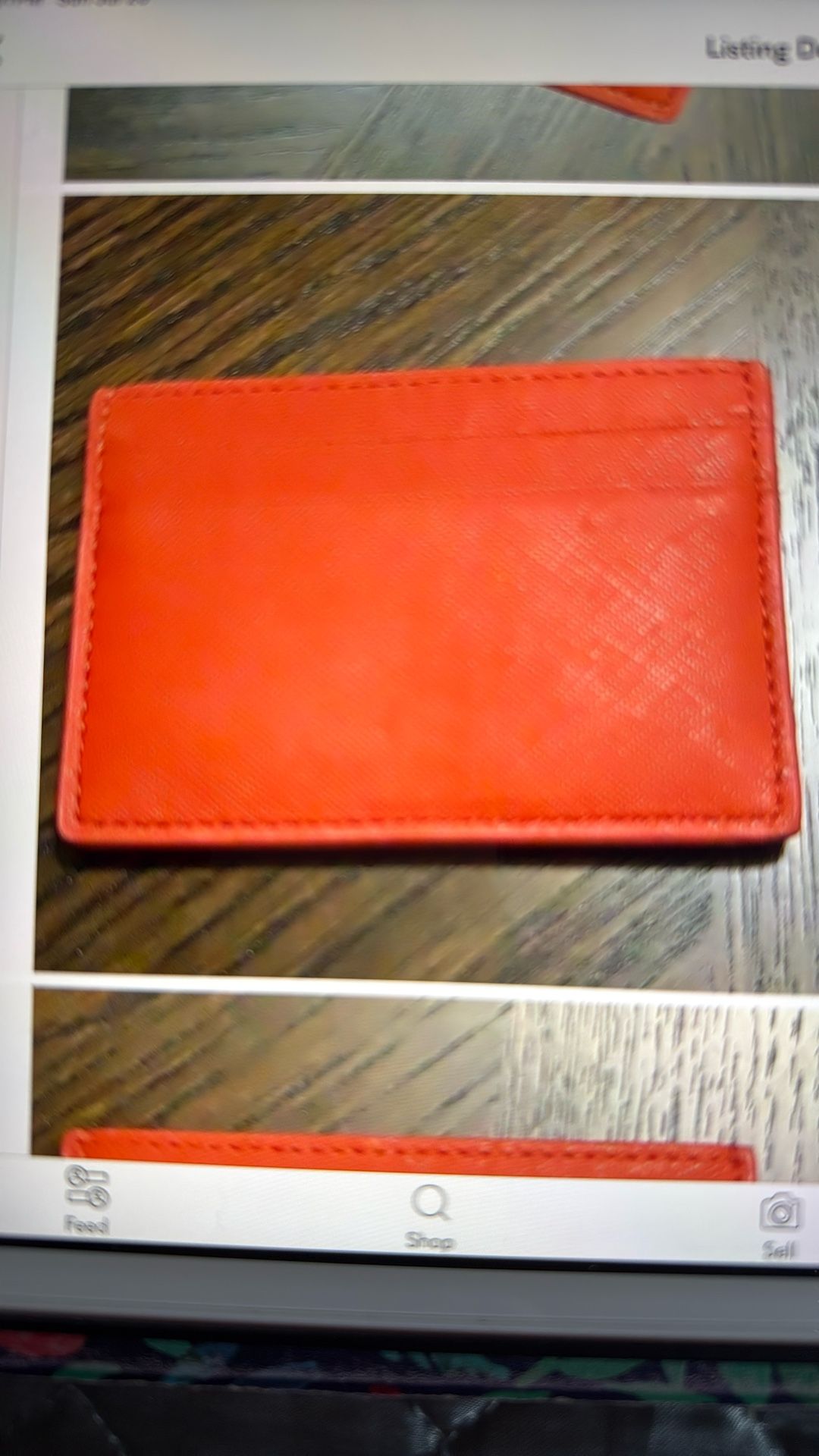 Orange slim card case holder, saffiano leather. Gently used it has a sharpie mark on the front as shown on picture, but still in very well condition.