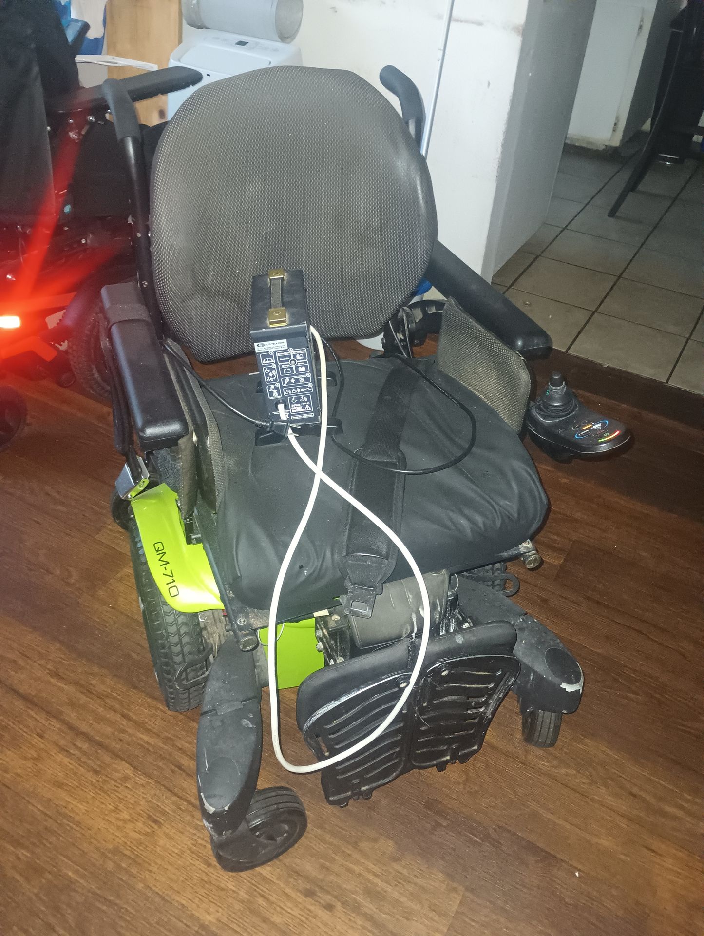 This is a quickie QM-710 power chair recently repaired. Has recently replaced batteries, the chair has a 300 lbs weight capacity. Tires and caster wheels are in good condition. Able to travel 15 miles on a full charge. Price is negotiable if you have any questions please feel free to ask.