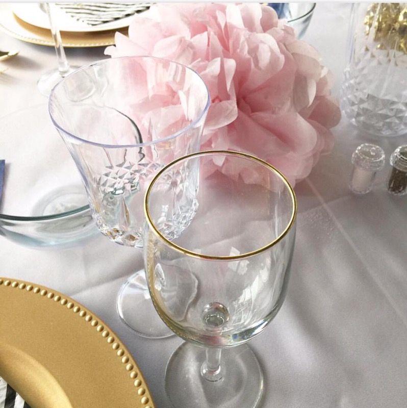 Pompoms flowers great for party decor I have pink, navy blue and gold Serious buyers only OBO $40 for all Plastic clear wine glass only I believe I have 40 for $50.00