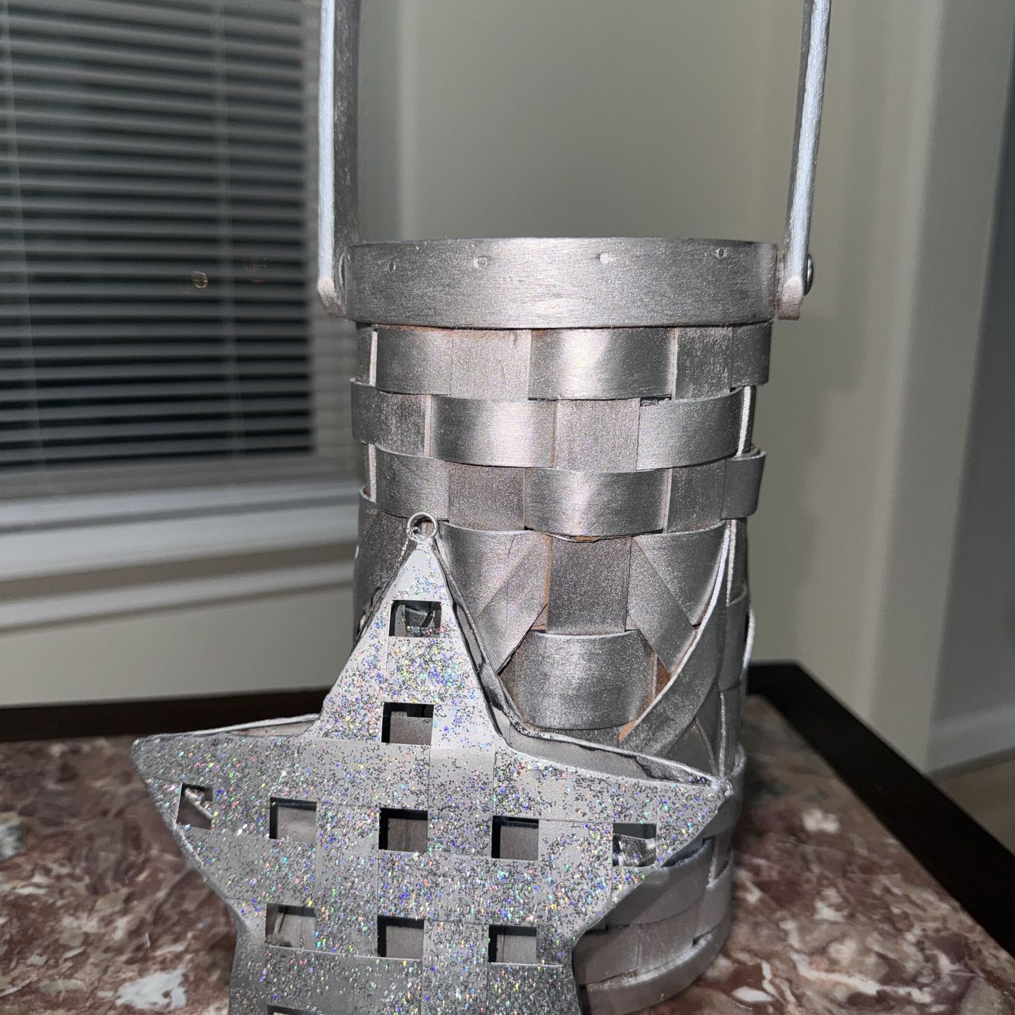 Handmade Decorative Silver Basket with Star – Beautiful Home Decor Charming handmade decorative basket finished in a silver-style material and paired with a lovely decorative star. This unique piece can be used as holiday décor (Christmas decoration) or simply as an elegant accent for your home all year round. Perfect for a table centerpiece, shelf decoration, or seasonal display. Features: • Handmade design • Decorative silver finish • Includes star ornament • Great for holiday décor or everyday home styling Condition: Very good condition. Price: $25 Reasonable offers are welcome. A lovely decorative piece that adds charm and warmth to any home. Message me if interested!