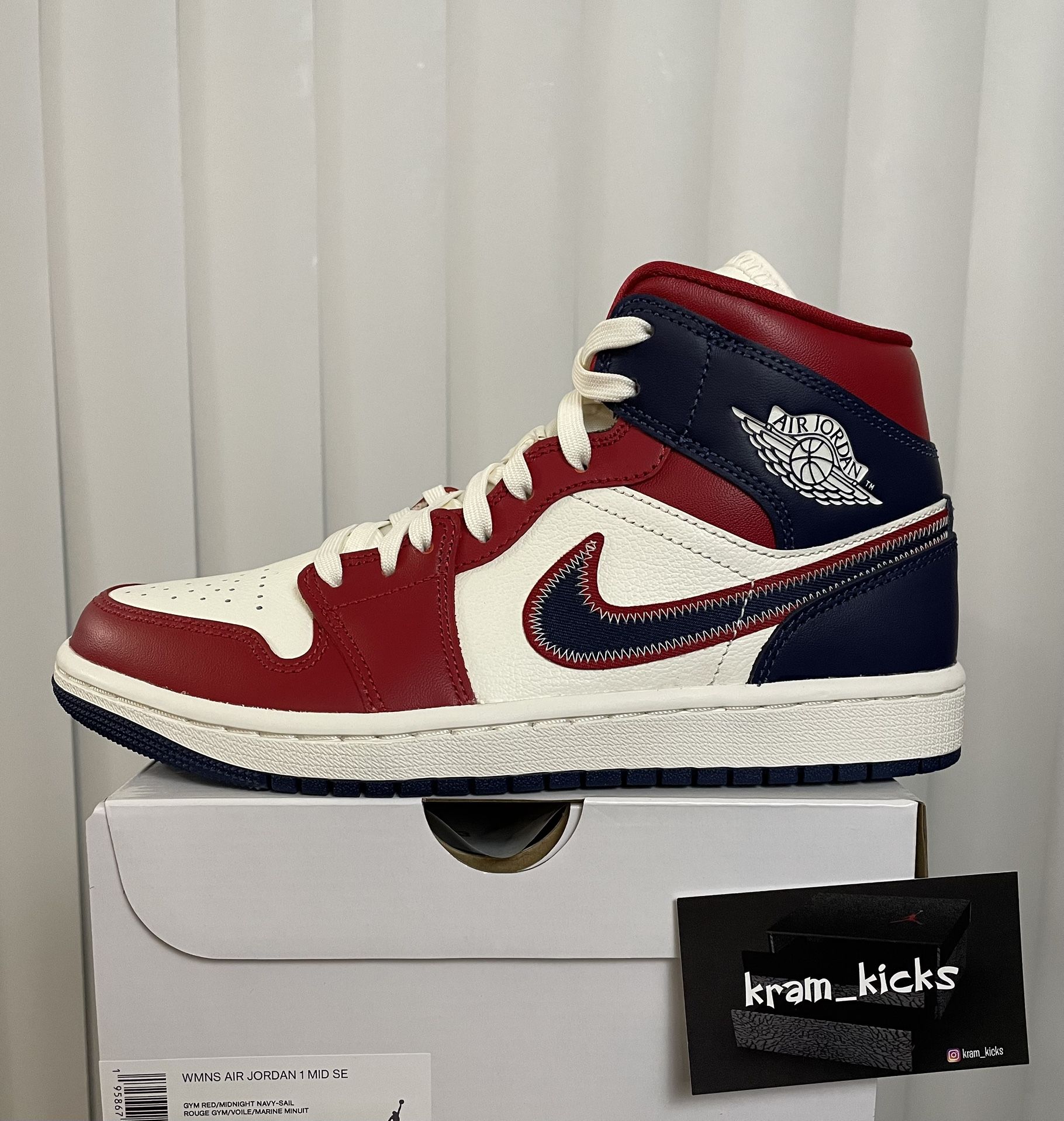 New* 2022 Nike Air Jordan 1 Mid " USA" Edition White Blue Red Womens Size 12 or MENS Size 10.5 US - OG All DS