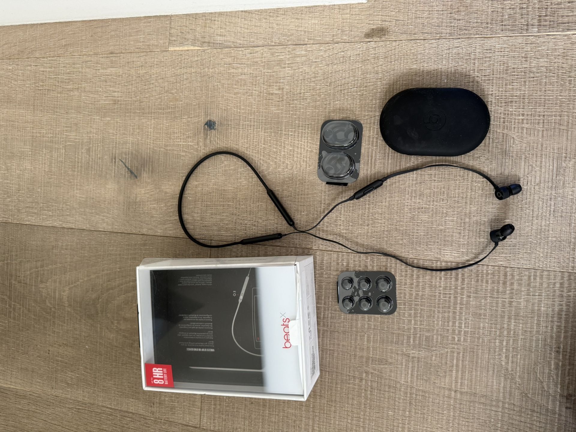 Selling my BeatsX wireless earbuds. They work great and come with the original box, carrying case, and multiple ear tip sizes. Comfortable neckband-style design with solid sound quality and long battery life. Great for workouts, commuting, or everyday use. Includes: • BeatsX wireless earbuds • Charging case • Multiple ear tips • Original box Normal signs of use but fully functional. Only selling because I don’t use them anymore.