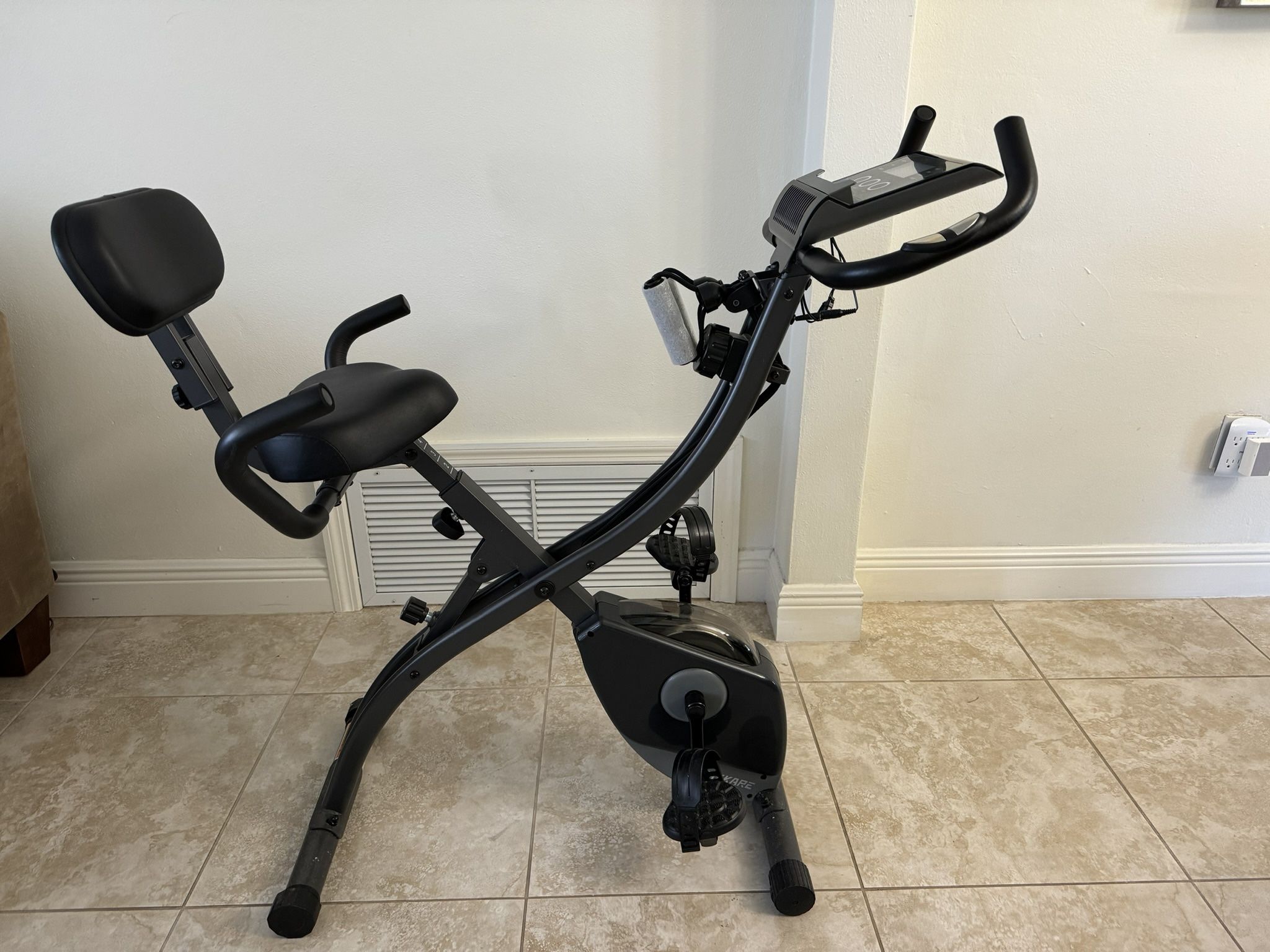 MaxKare Folding Upright Exercise Bike with Pulse sensor and LCD display for sale. In great condition, used once. A high end exercise bike with pulse sensor to help enhance your health. The bike includes an LCD display to show your progress