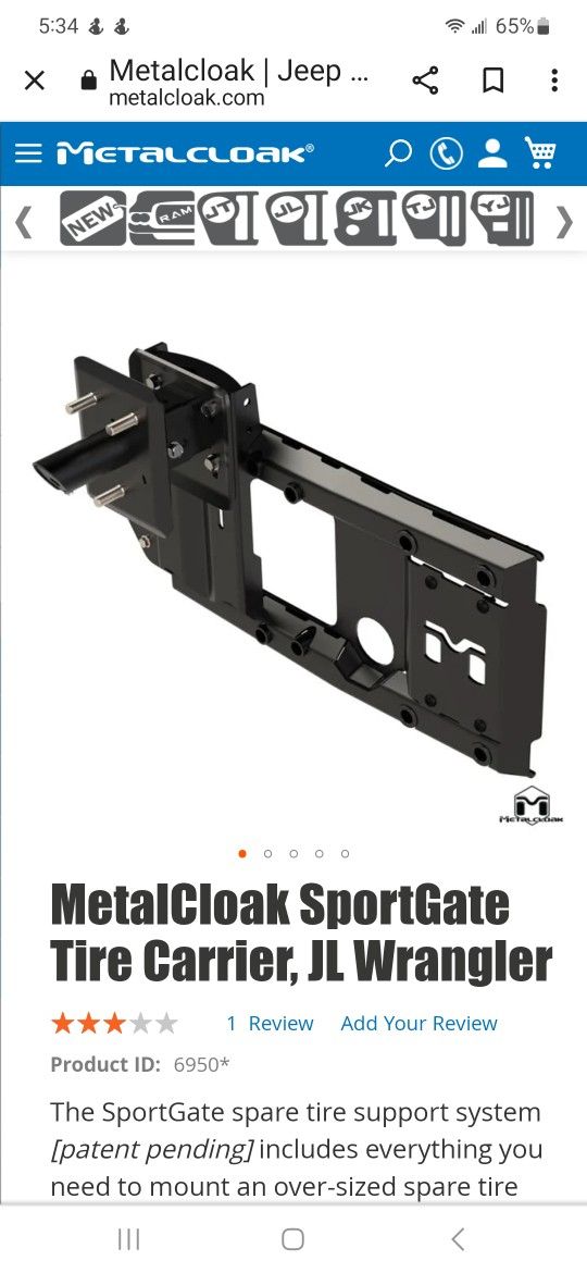 Brand new in the box JL Metal Cloak sport gate spare tire carrier $450.00
