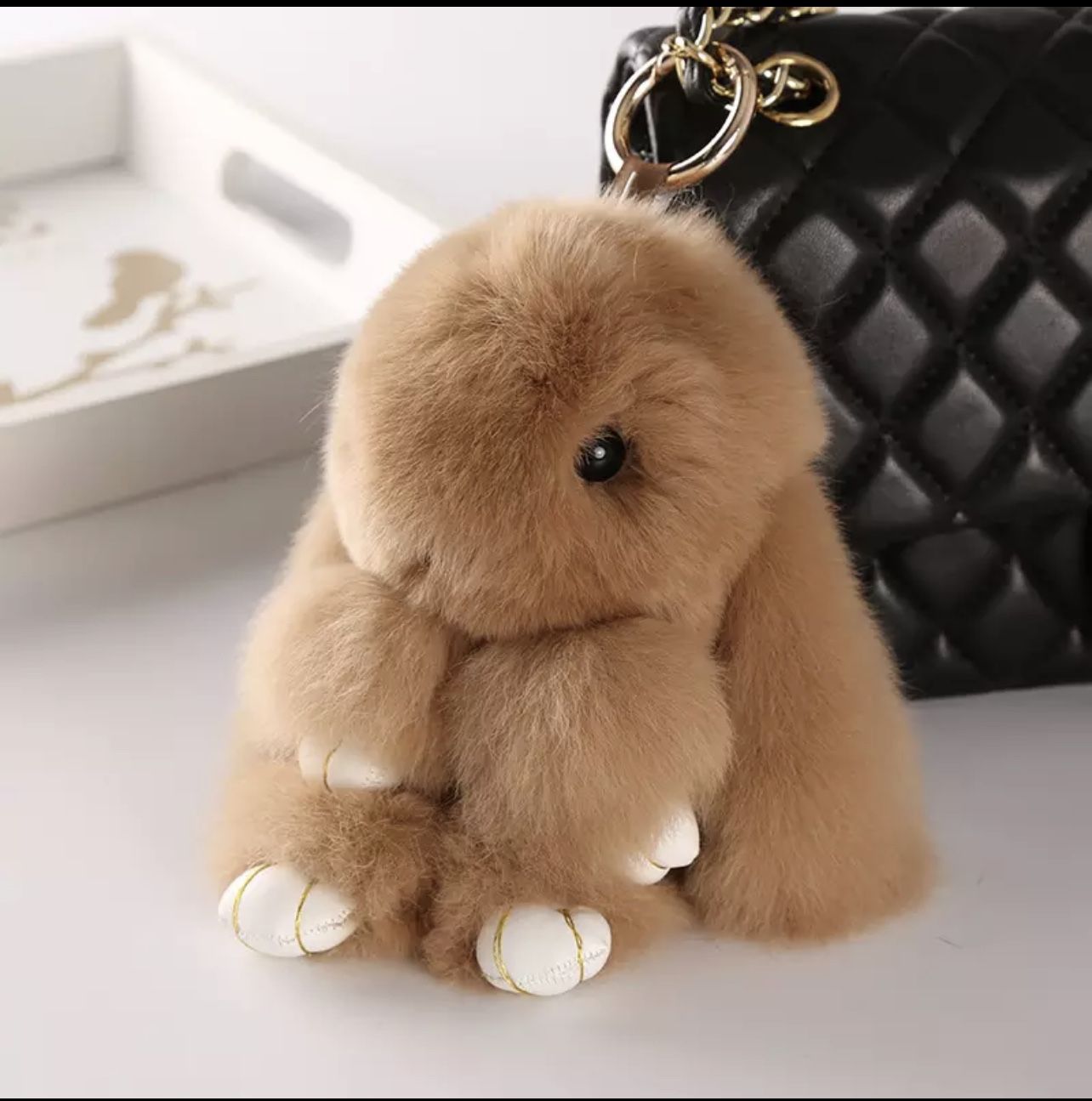 Brand new Keychain 14cm Cute Pluff Bunny Keychain Rex Genuine Rabbit Fur Key Chains For Women Bag Doll Fluffy Lovely Pompom Pick up in Eastlake Chula Vista área Available in colors Dark Gray and golden $10