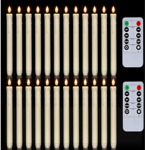 New 24 Pcs Flameless Taper Candles with Remote Timer