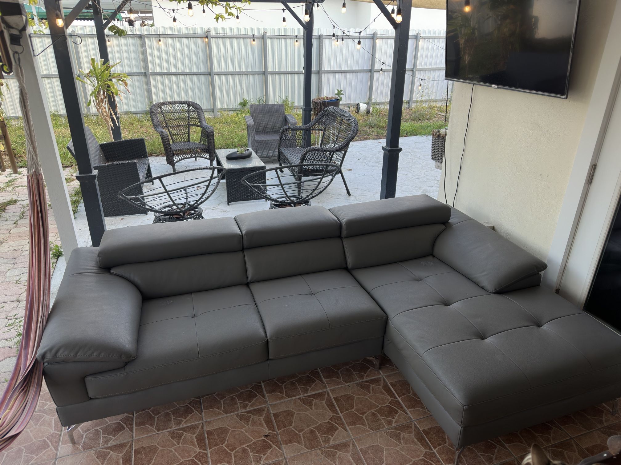 Sectional sofa in really good condition. It has headrest feature and very comfortable. Just minor cosmetic wear and tear that’s easily fixed. Hablo español