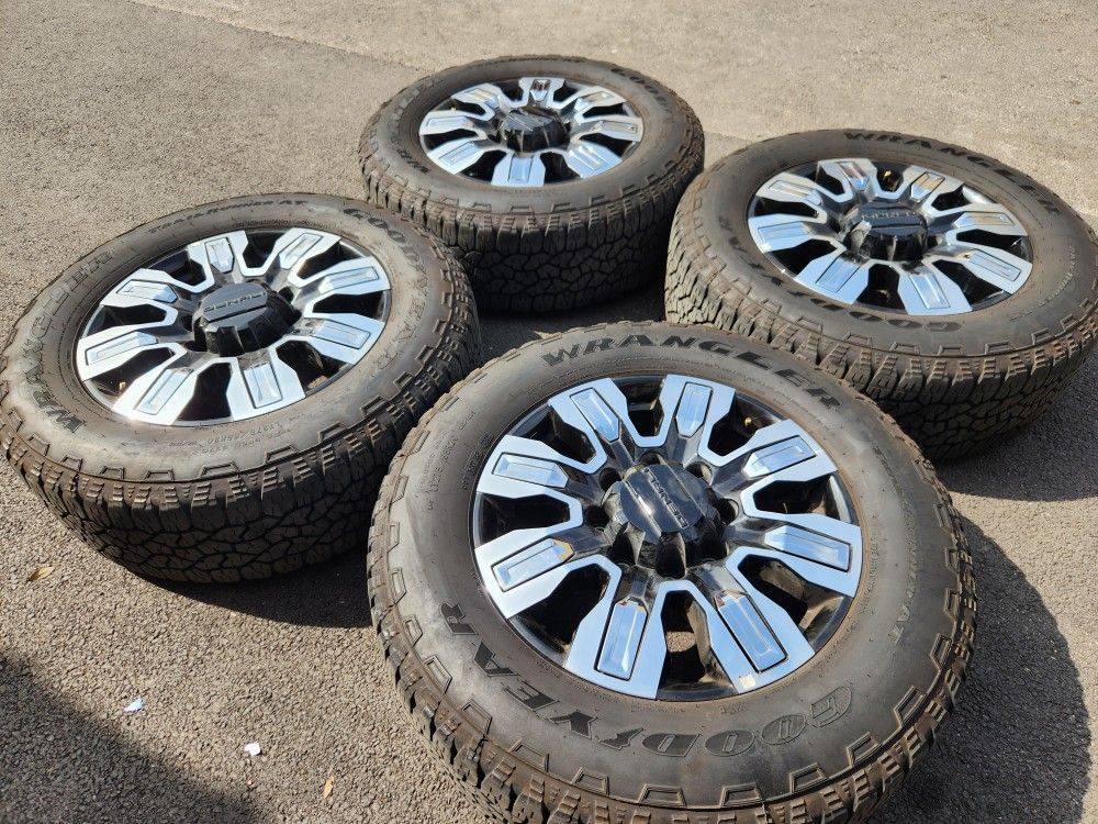 used in great condition no damage or issues, LT275/65/R20 goodyear wrangler trailrunner all-terrain about 75-80% tread 8x180 bolt pattern will only fit 2011+ present models no tpms sensors Pick up in Carrollton tx