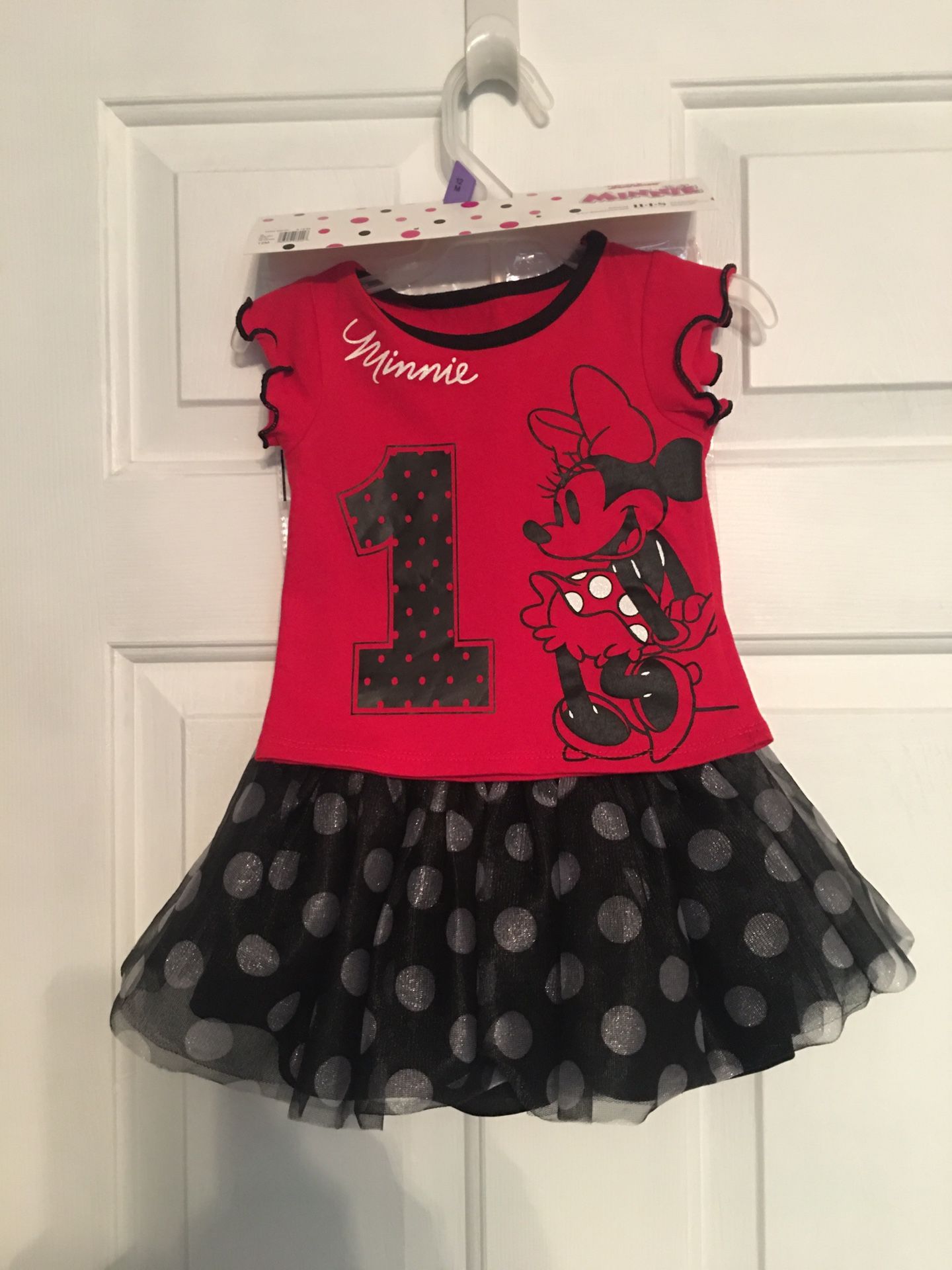 Disney Jr Minnie Mouse 1st Birthday outfit. 2pc set complete with Minnie Mouse ears and bow. New. Never worn.