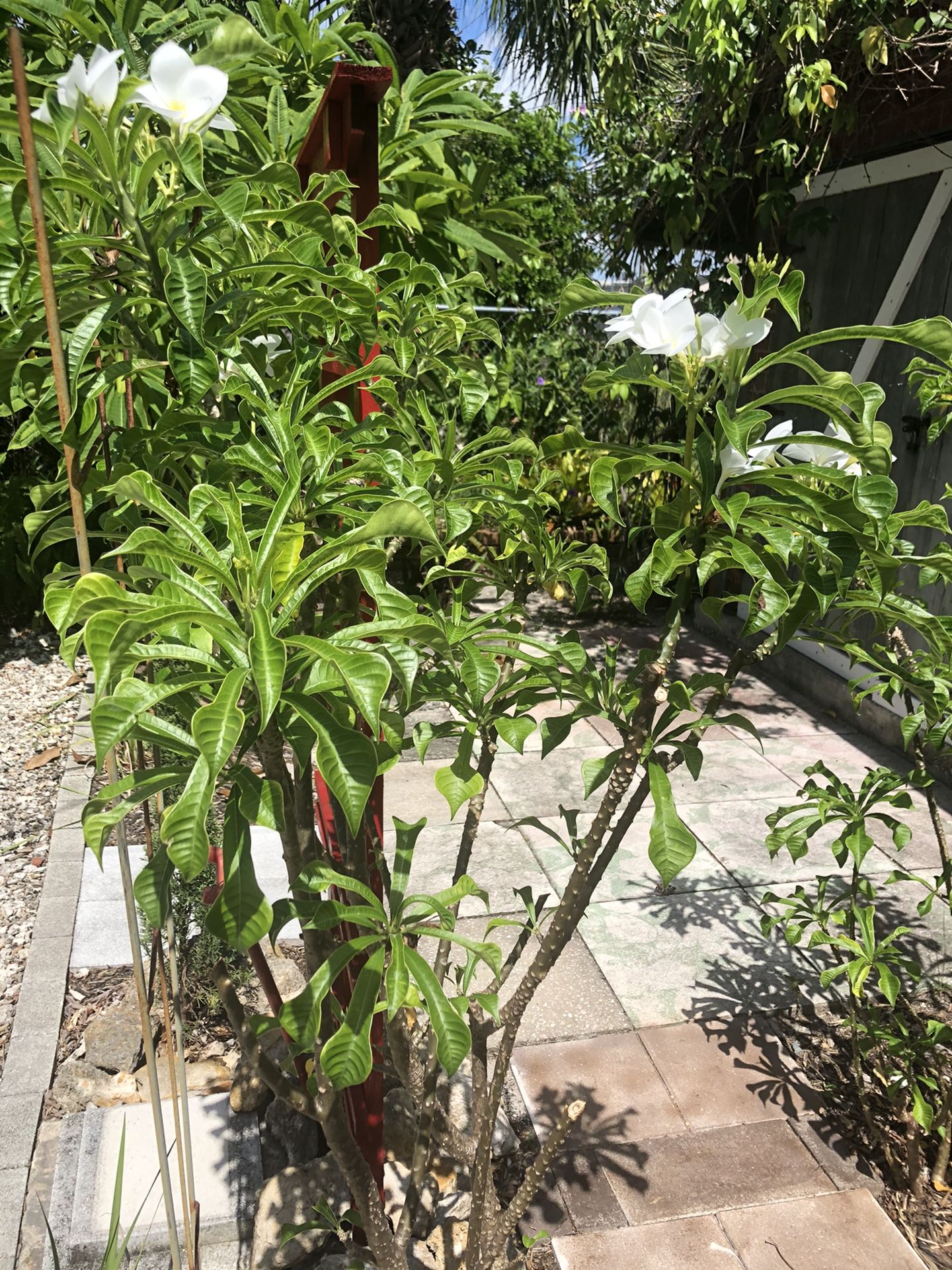 Plumeria bridal bouquet is a rare species of plumeria and a great addition to a garden or container. They bloom year-round and have large clusters of white 3” flowers. They have very rapid growth and can become a small tree within a year. They can also grow and bloom indoors. These are about 4-5 feet and I’m selling them for $20.