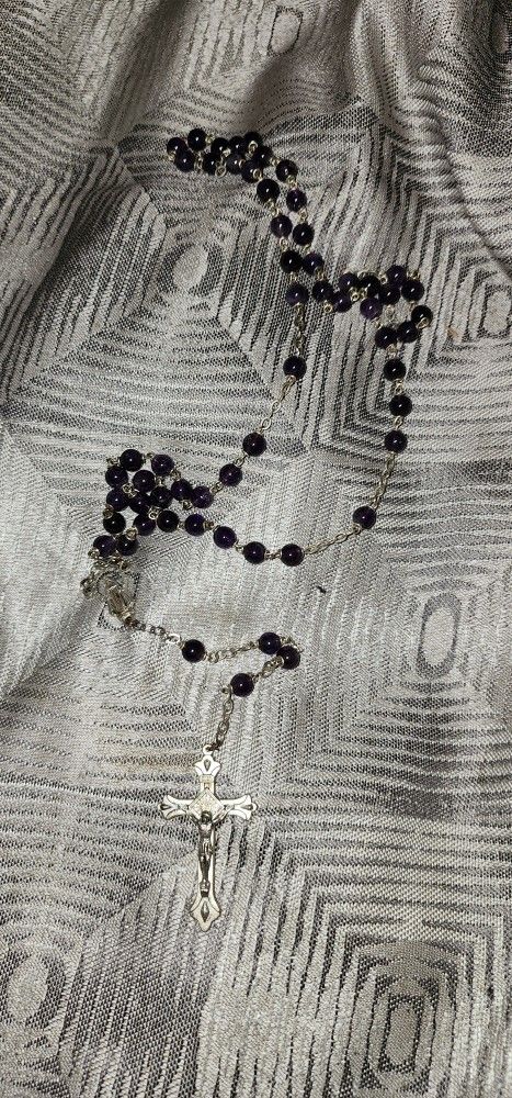 It is purple the flash does it no justice as it looks black but its PURPLE Handmade i think Good condition worn a few times