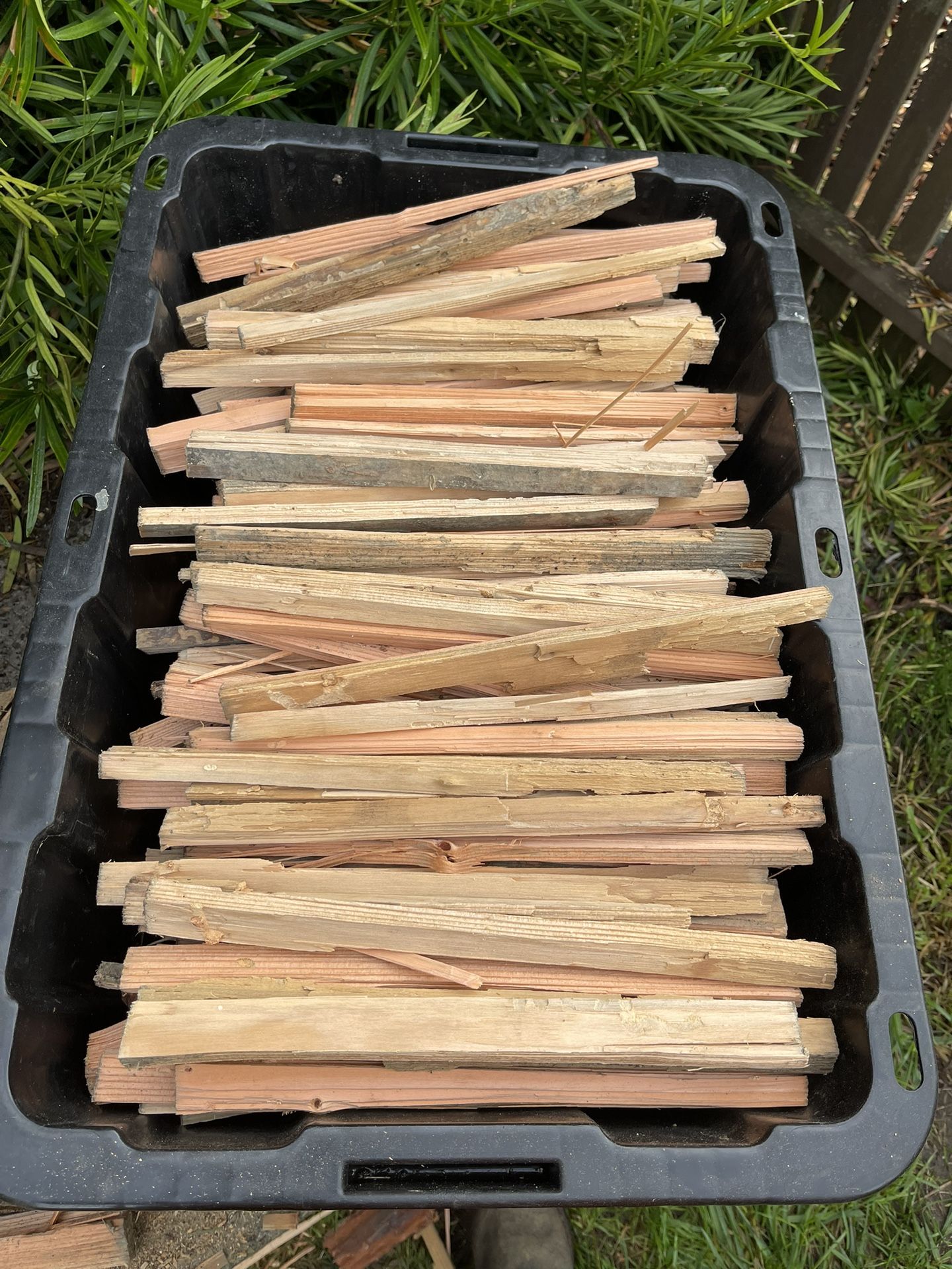 27 gallon tote full of firestarter kindling. bone dry ready to start fires.