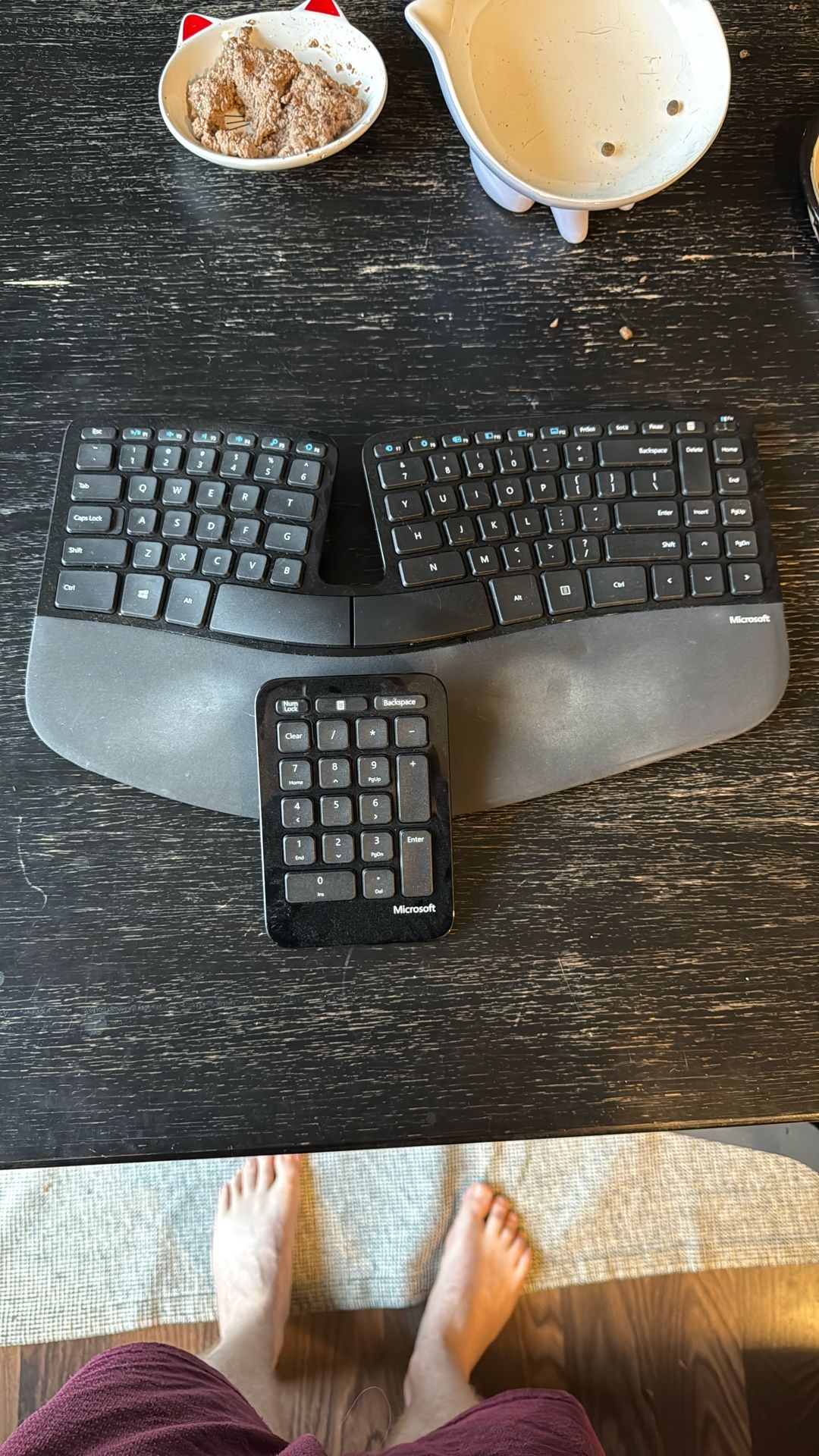Microsoft ergo keyboard. Includes 10key pad, usb dongle. Works great
