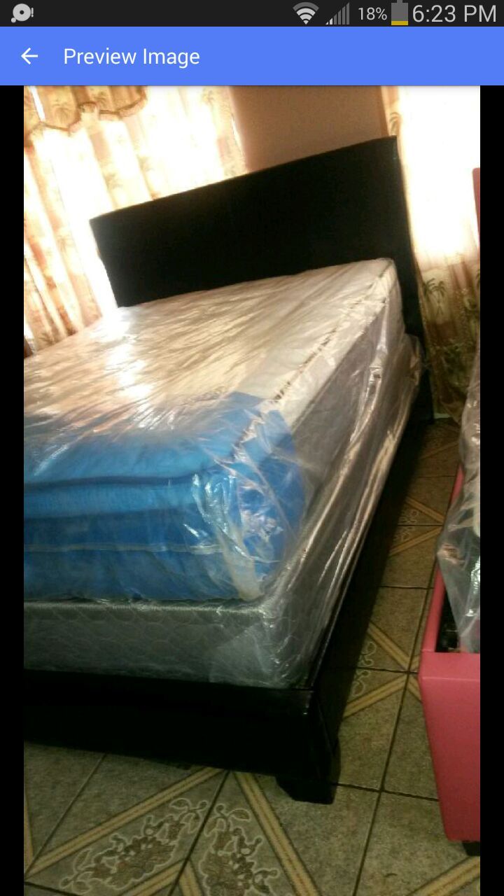 NEW QUEEN LEATHER BED FRAME WITH NEW PILLOW TOP MATTRESSES WITH DELIVERY