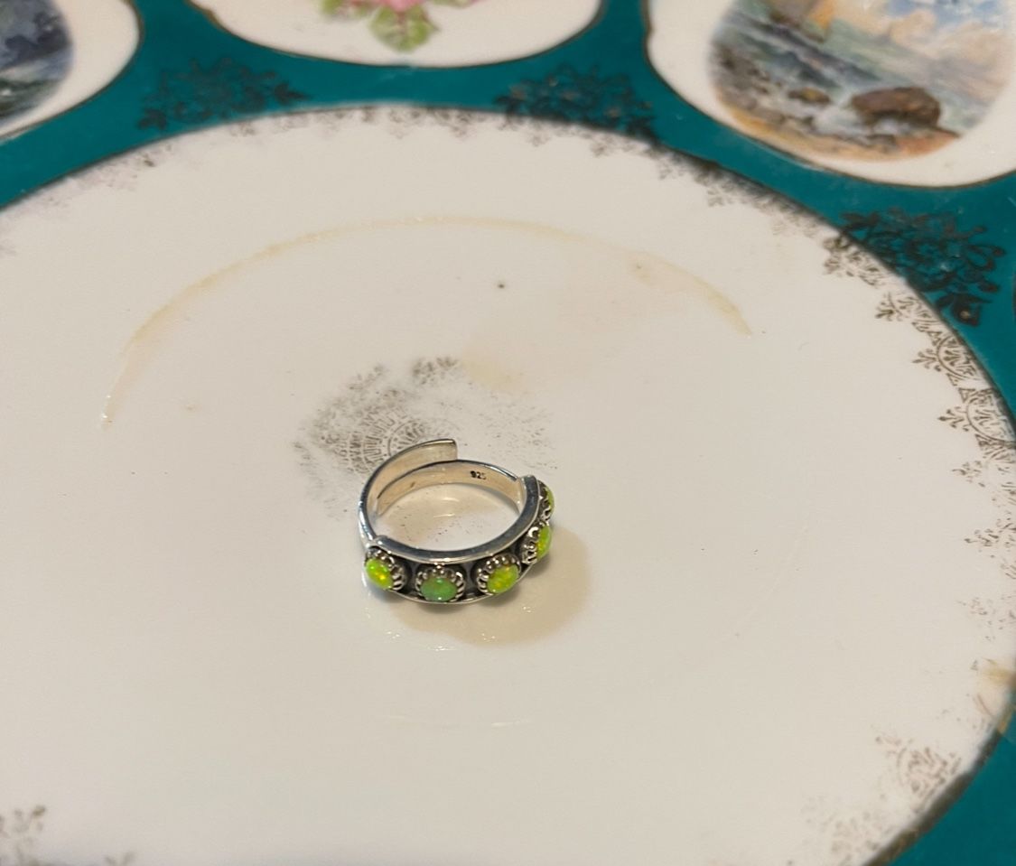 BEAUTIFUL AURORA OPAL STERLING SILVER ADJUSTABLE RING BRAND NEW