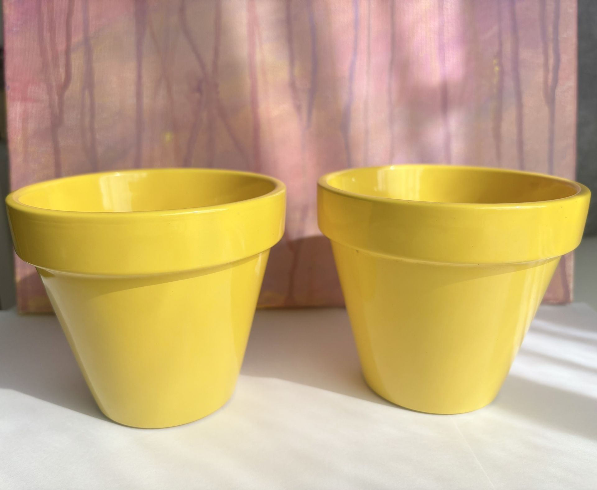 This sale includes two beautiful yellow ceramic planters, just in time for your early summer gardening plans.