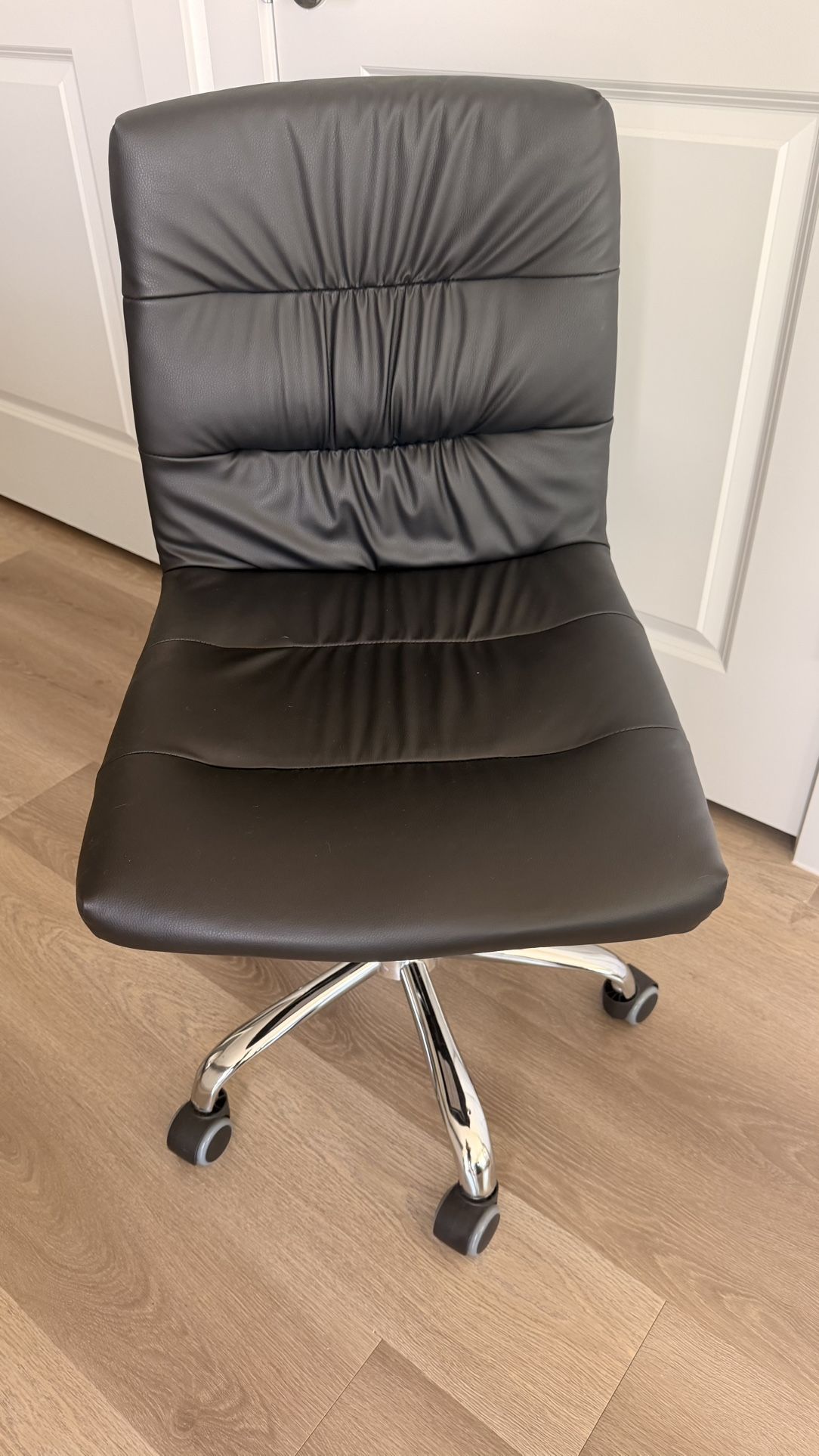 Black leather office chair Rotates and lifts 19” height 15” width of seat