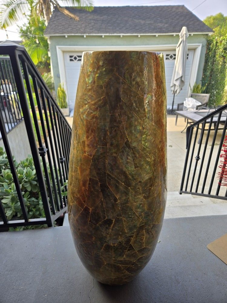 large, iridescent mosaic floor vase