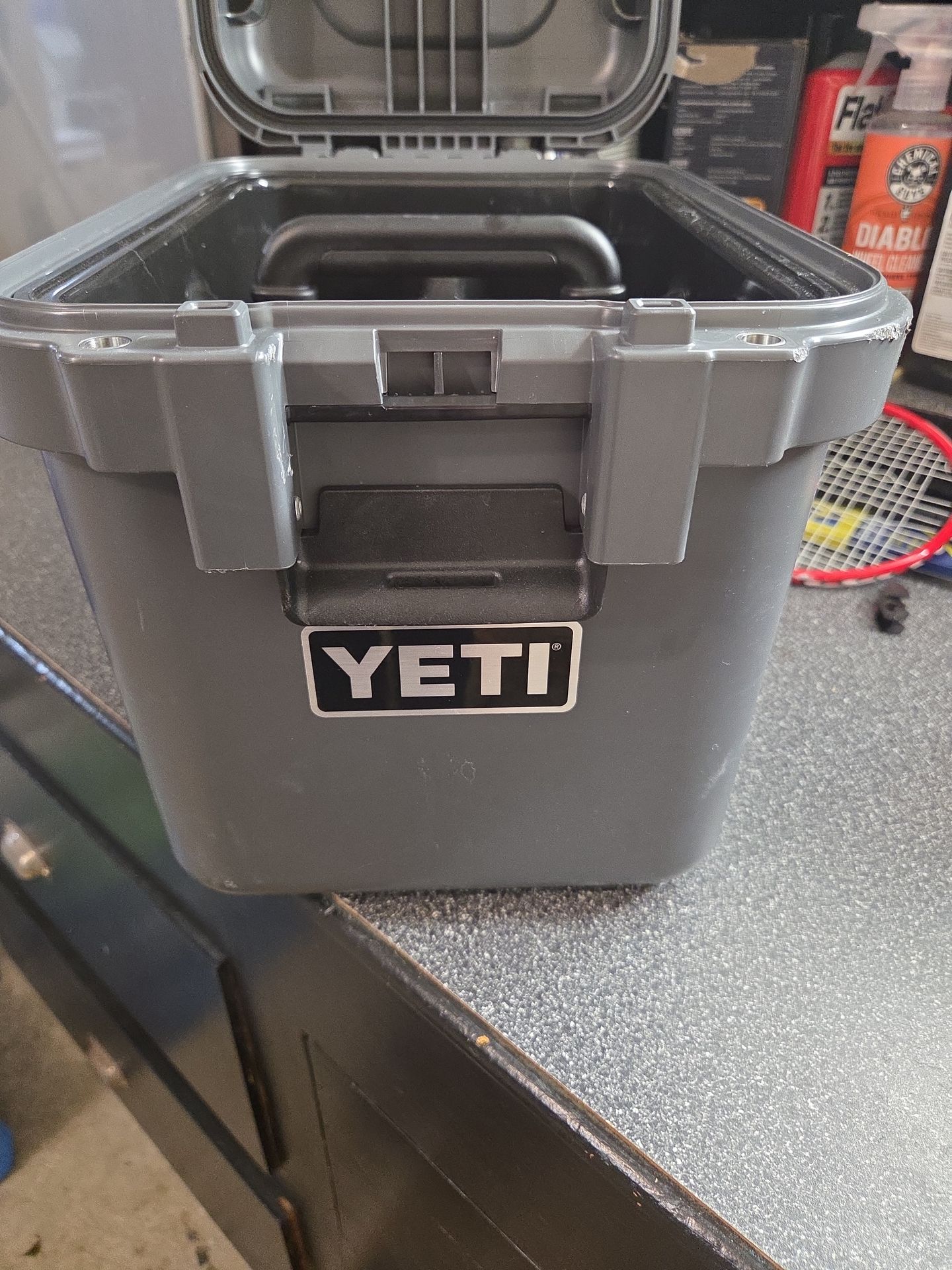 Like new only used once and the mark on top is just sticker residue that will come off easily with a little elbow grease