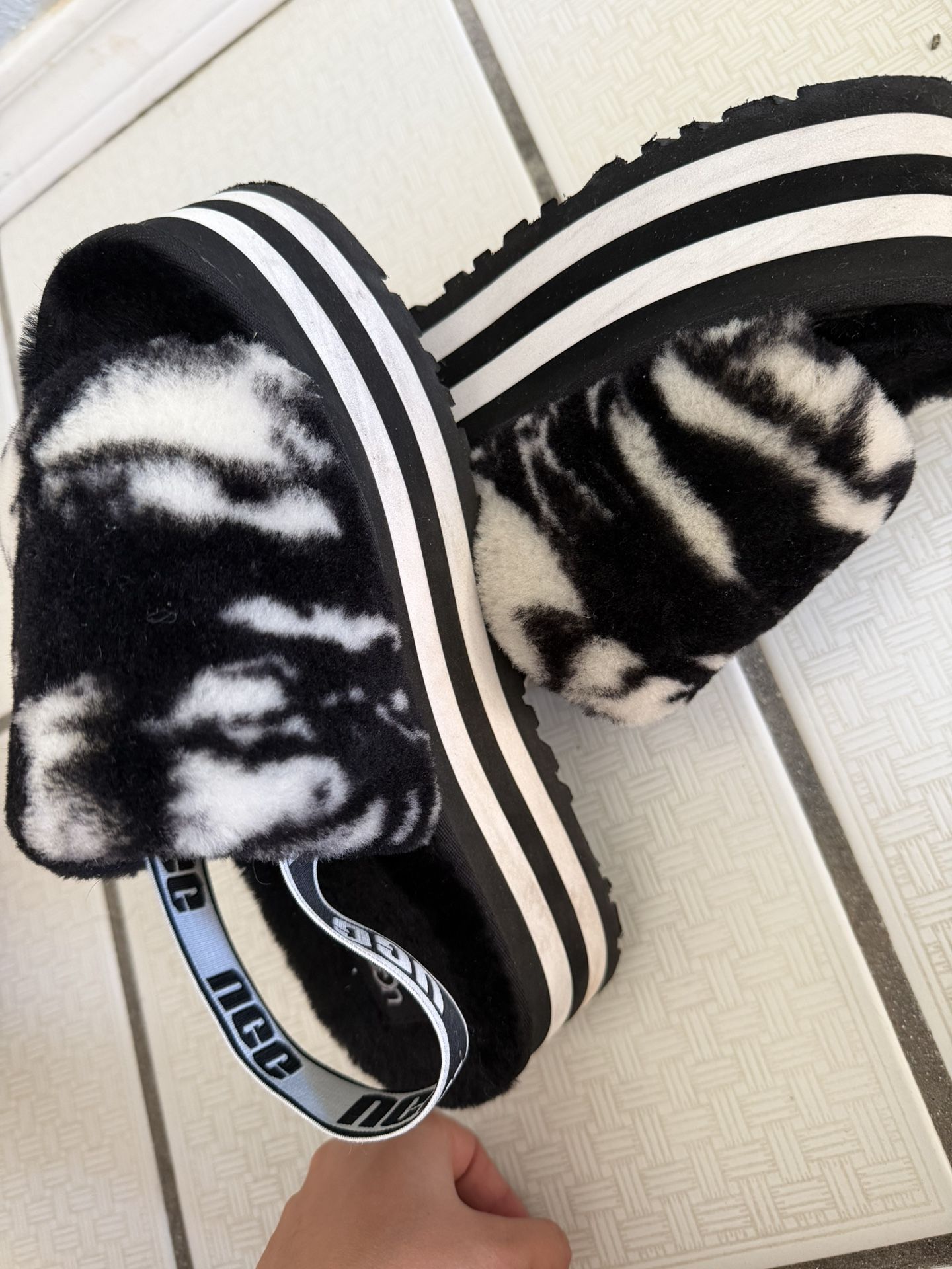 Super comfy fuzzy platform sandals, size 9. Worn only a few times, in great condition. Perfect mix of cozy and trendy!