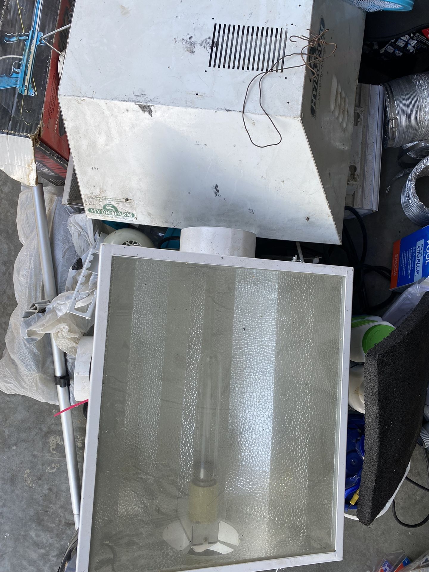 Selling as a set - Includes 4 Lights 2 generators for the lights, a blower for the vent and the tent (it’s about 4 x 3)