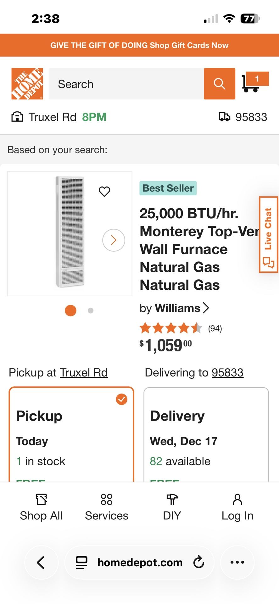 Williams 2500 BTU/HR
