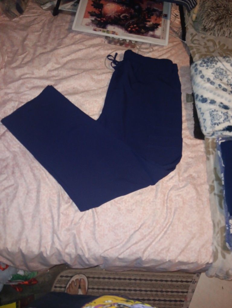 I'm selling a pair of blue scrub pants for $5.00 and they are a size 2XL