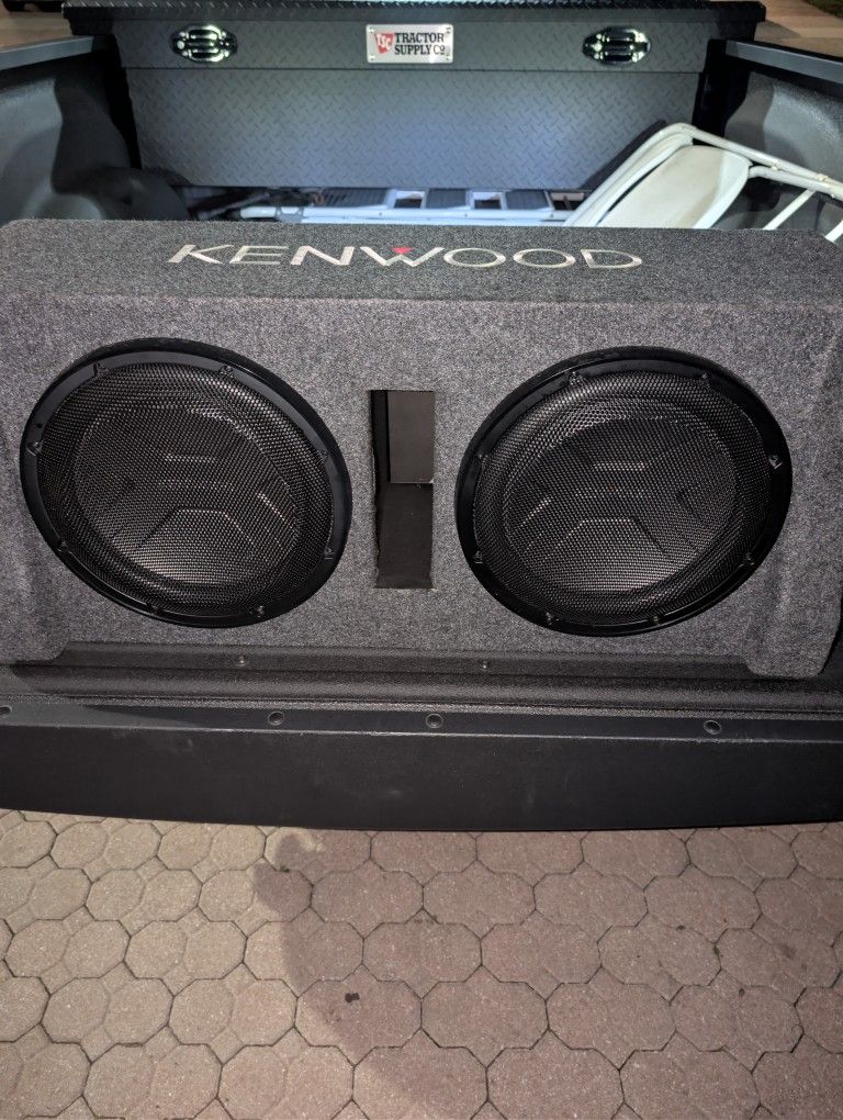 Kenwood Excelon P-XW1221D Product info: ported enclosure with two 12" subwoofers wired for 2 ohms total impedance polypropylene cone with diamond array pattern stress controlled spider 5/8" MDF construction with 3/4" MDF baffle power handling: 600 watts RMS (2000 watts peak) total impedance: 2 ohms frequency response: 31-300 Hz spring-post terminals accommodate up to 8-gauge wire can be installed as front-, rear-, or down-firing steel-mesh grilles included dimensions: 35.75"W x 15-813"H x 15.7"D1 x 12.5"D2 warranty: 2 years 60-day returns MFR # P-XW1221D Item # 113PX1221D