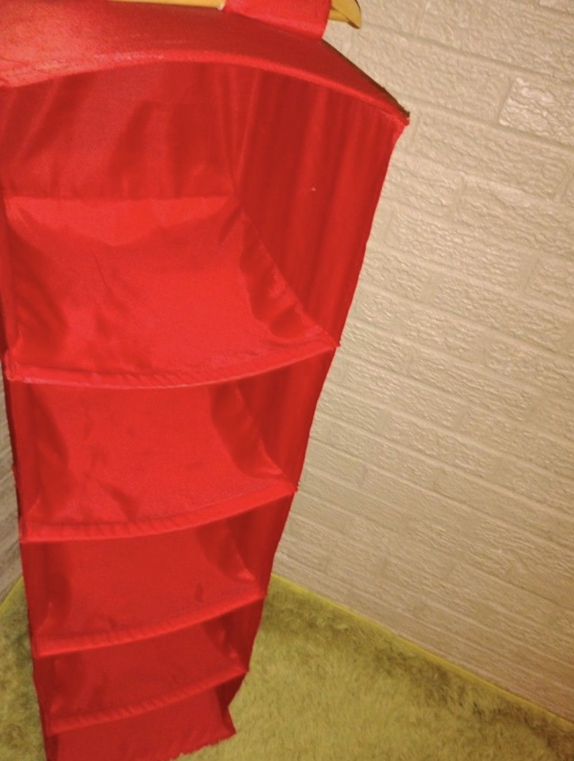 6-compartment hanging closet organizer in red. Pet free home ๐ฆฎ Smoke free home ๐ฌ ๐ beach daily and ford road Only porch pick up ๐ Cash only ๐ต