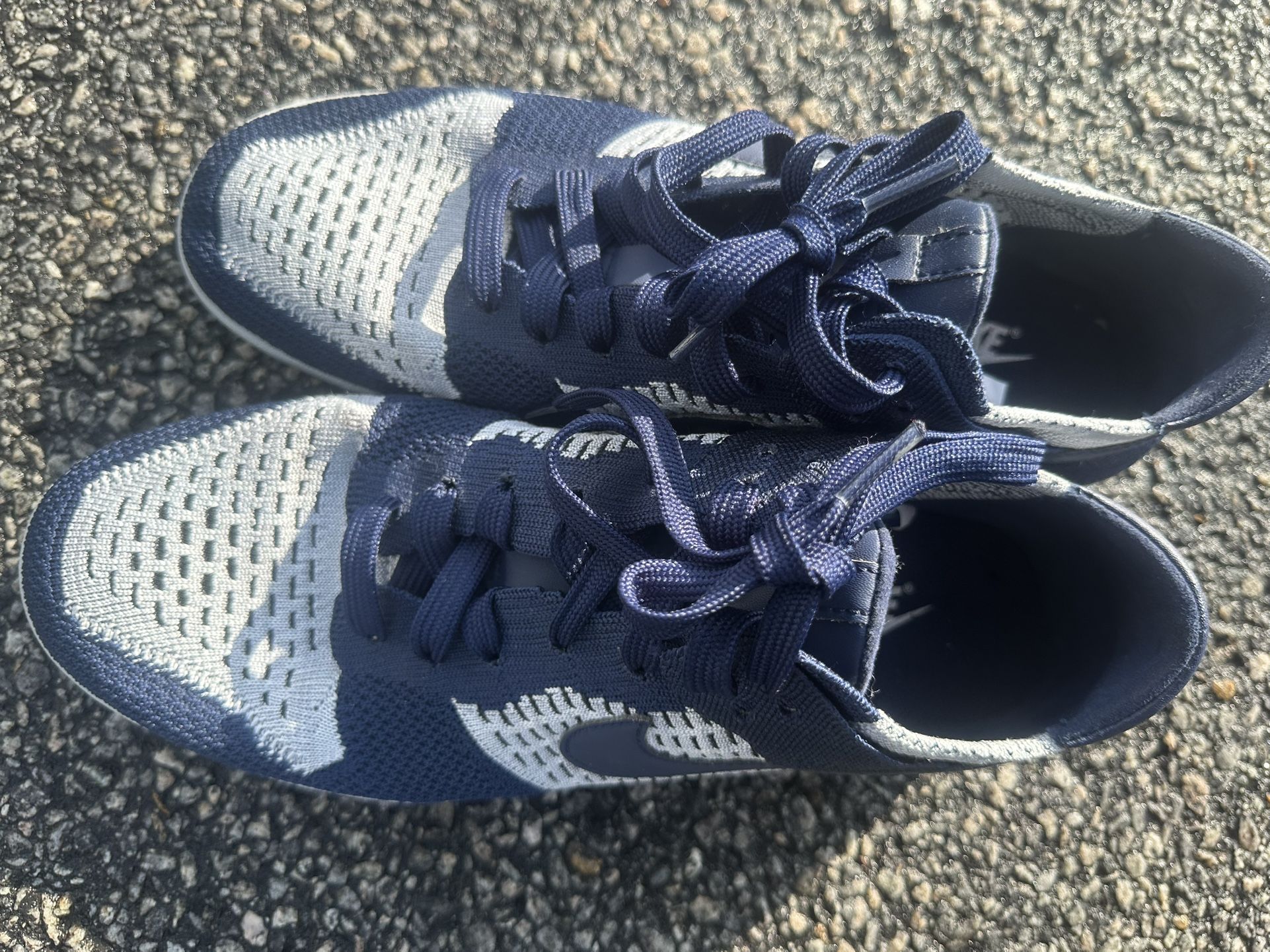 Nike Dunk Low Flyknit sneakers in the College Navy and Pure Platinum