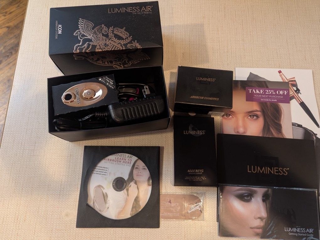 Lumnessair The art of beauty! Icon-Air brush System. 1- Beauty is getting started on DVD & a manual .1-LIP & Eye compact & 4- bottles 4-shades of foundation. All brand new! The kit has never been used. (Received 2 for X-mas). (New on Amazon $ 68.99). Asking $25.00!