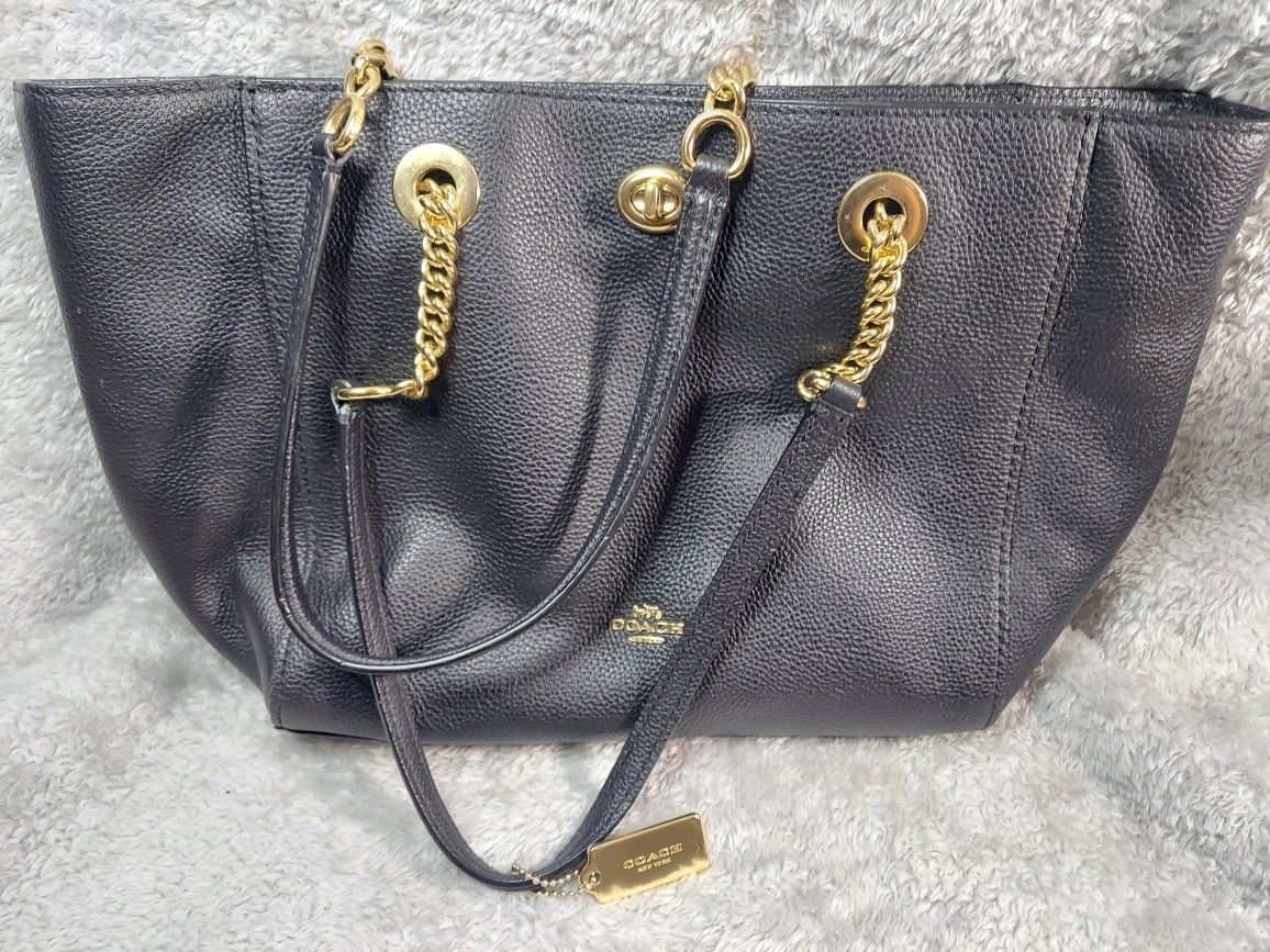 Coach Leather Turnlock Chain Black Tote Must Pick Up