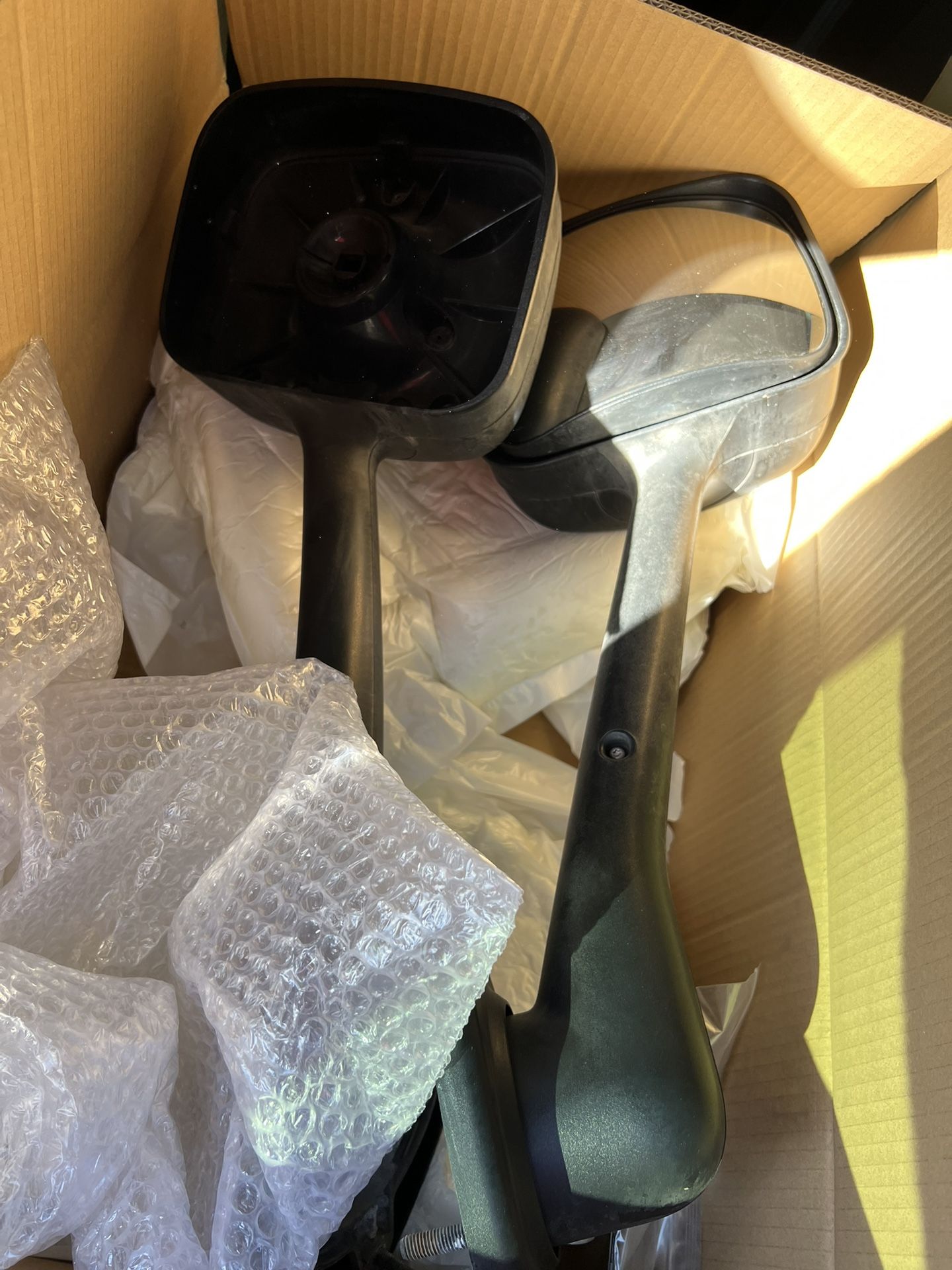 2015 Freightliner hood mirror. Left side is missing the mirror. Right side is good.