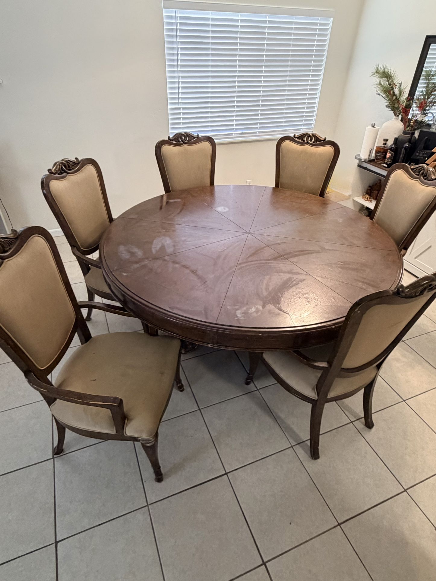 6 Seater 2 chairs need reupholstering Just needs small sand down and stain. Solid very heavy 100% solid Oak Willing to negotiate Price