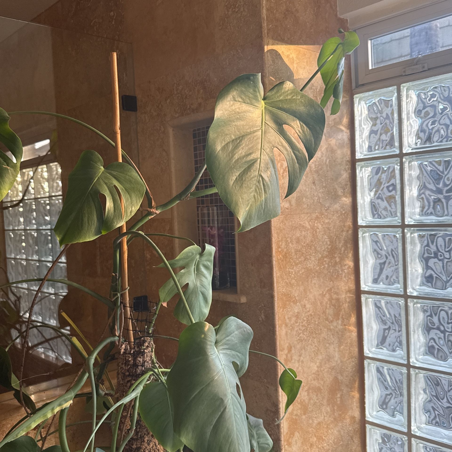 Big Monstera plant with new growth and so many Ariel roots. I don’t work from home anymore so hard to take care. Comes in a Terra cotta planter and saucer. Might need good stacking and new soil.