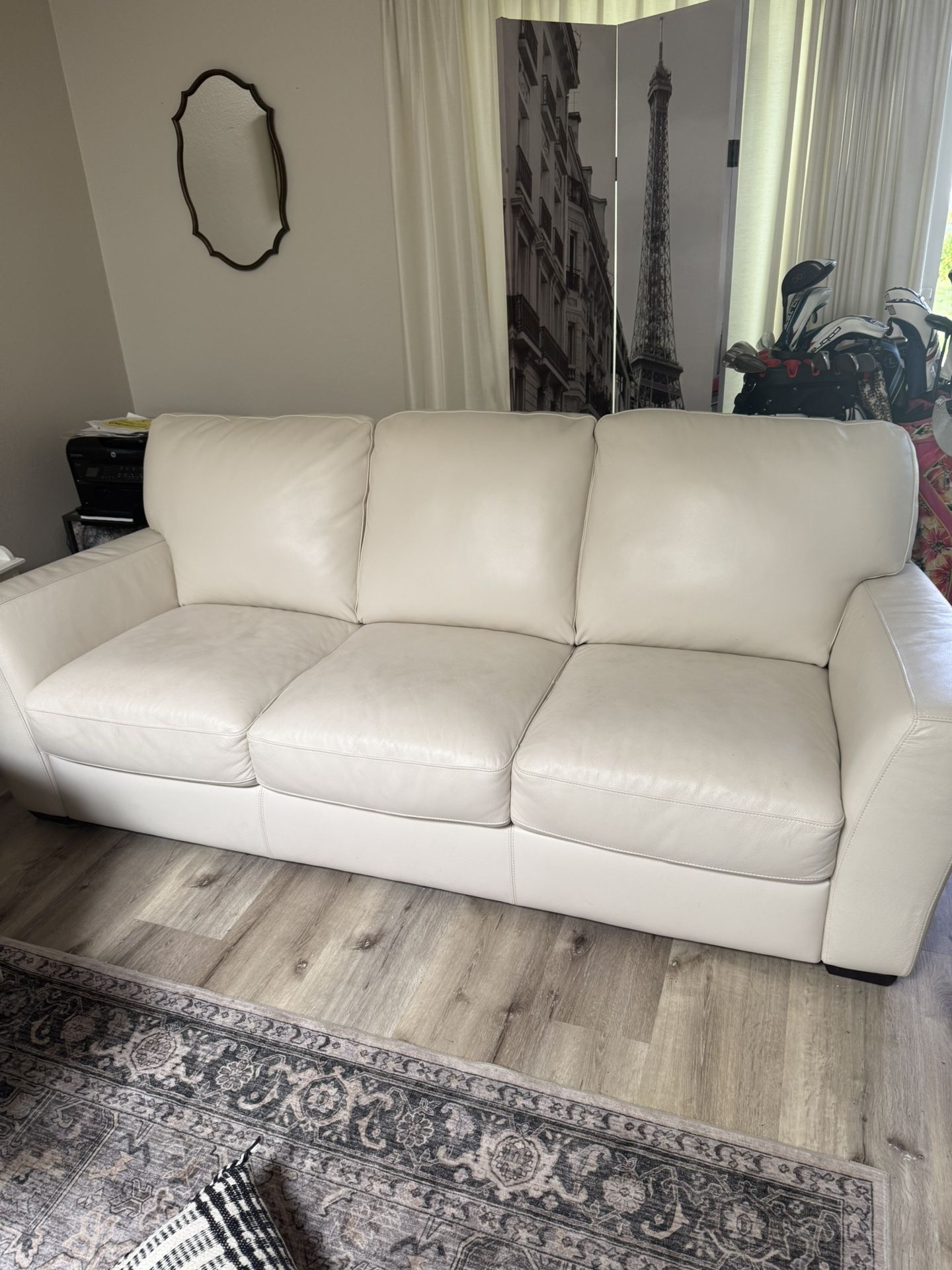 7 Foot LEATHER Couch Cream Colored