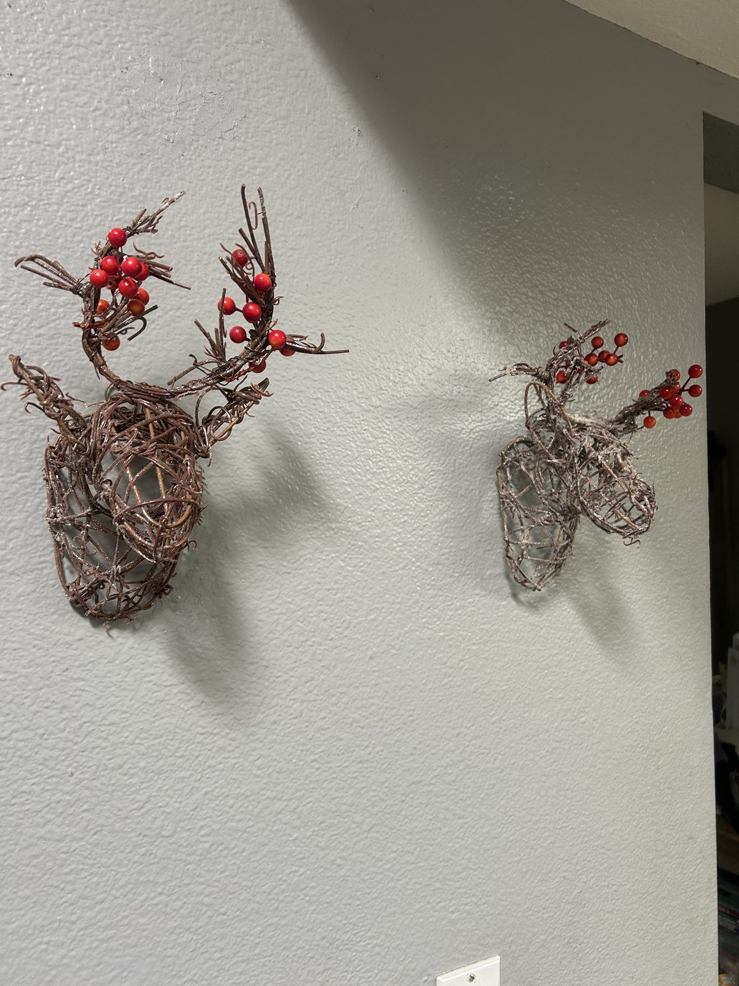 Set of Two Rustic Hanging Reindeer Grapevine Twig Heads Christmas. 10”(L) x 7.5”(W). $15 For Set (FIRM) Will Take Zelle.